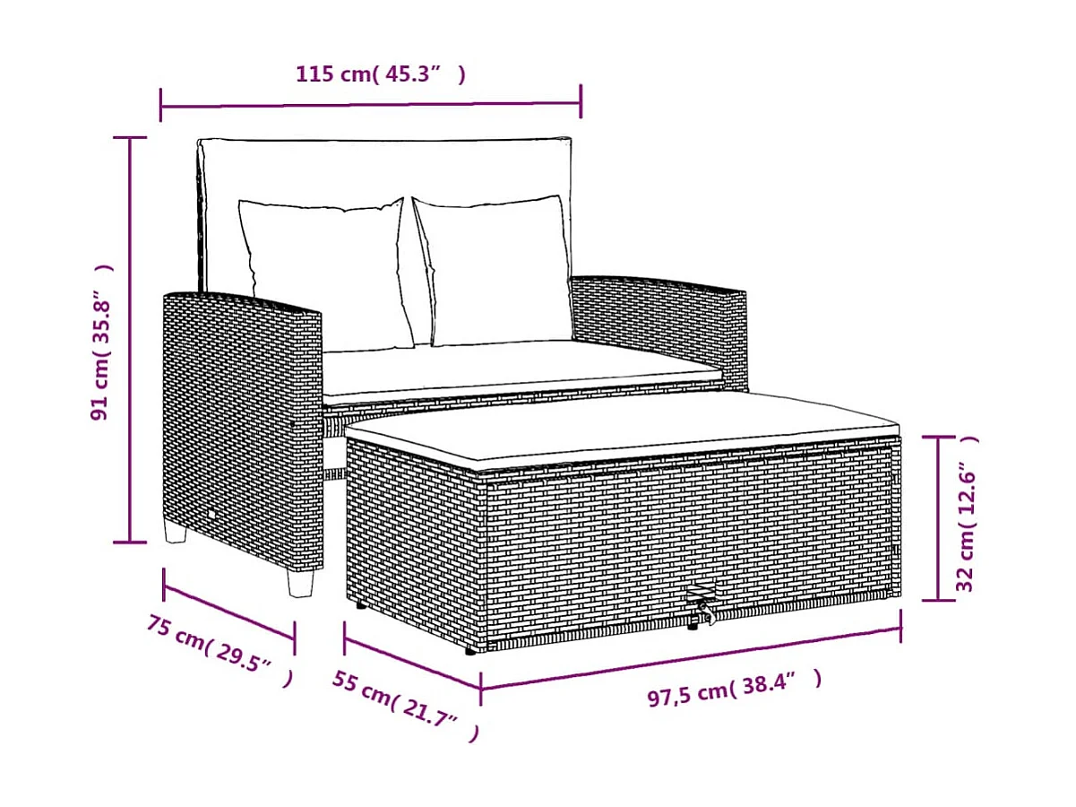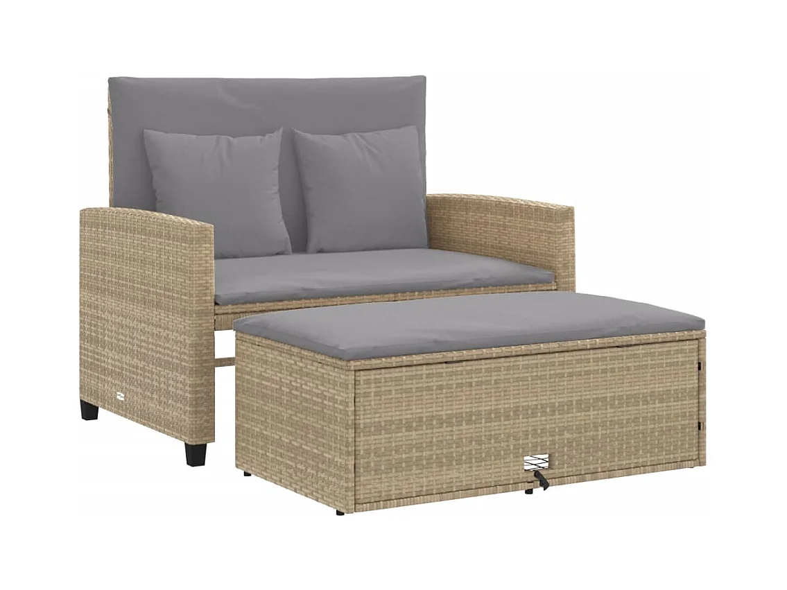 Canapé de jardin 2 places avec tabourets beige résine tressée