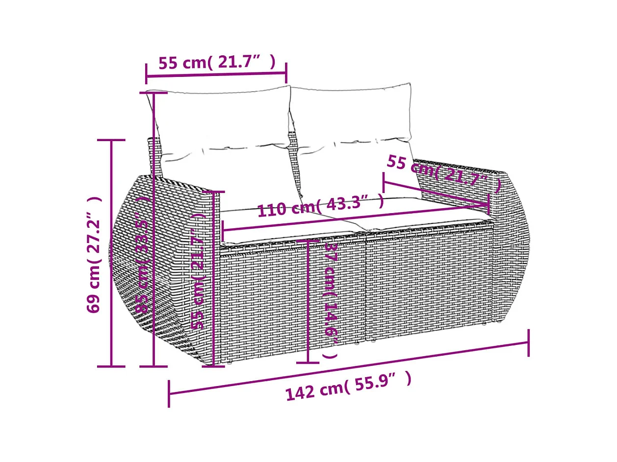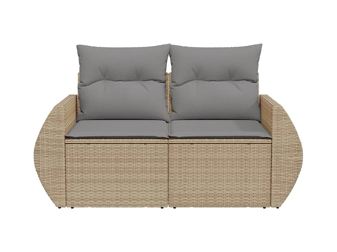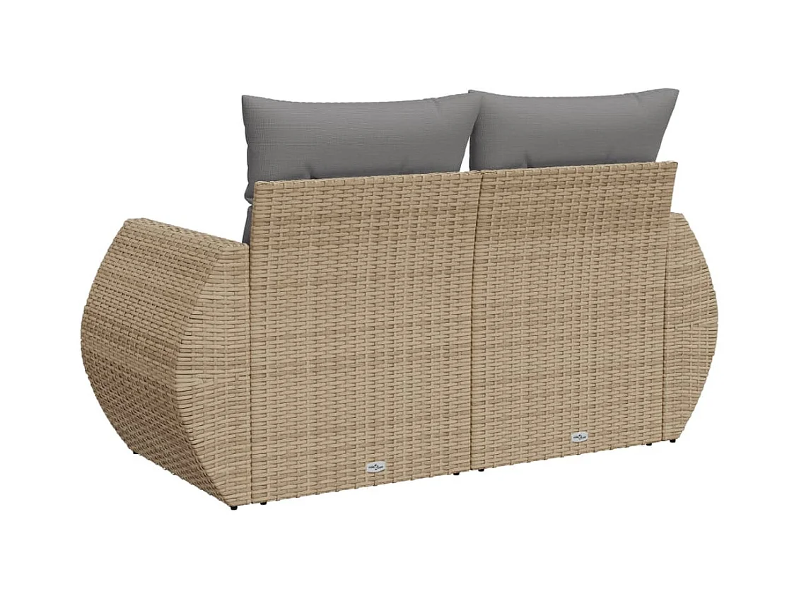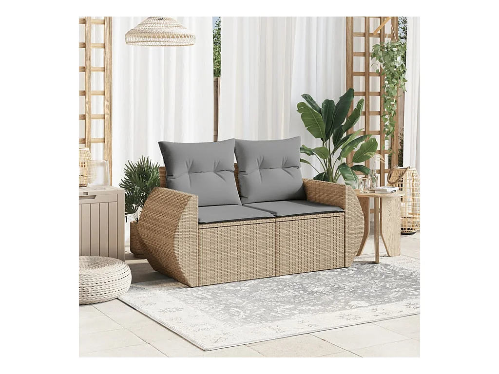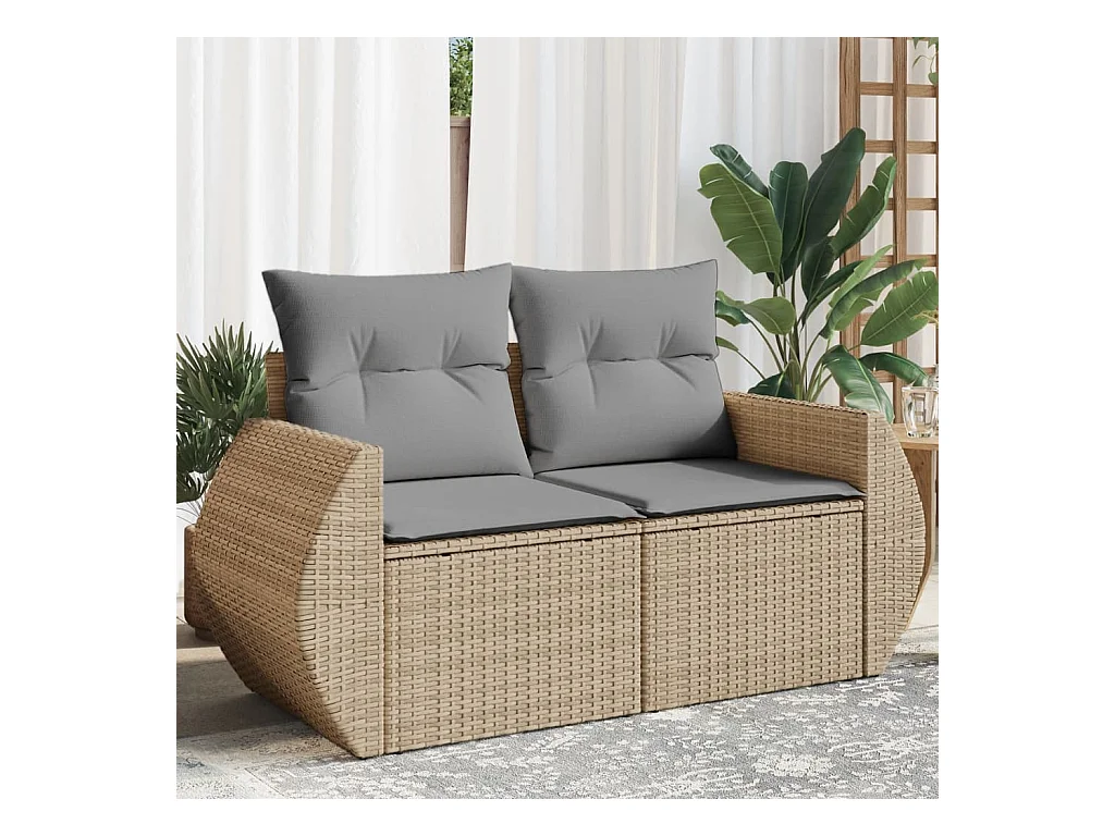 Canapé de jardin avec coussins 2 places beige résine tressée
