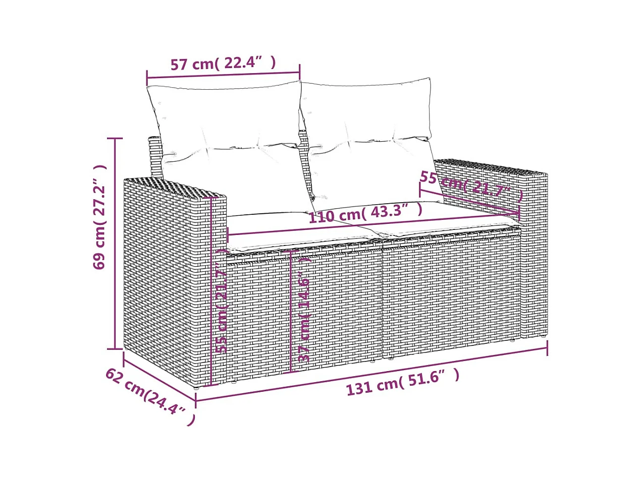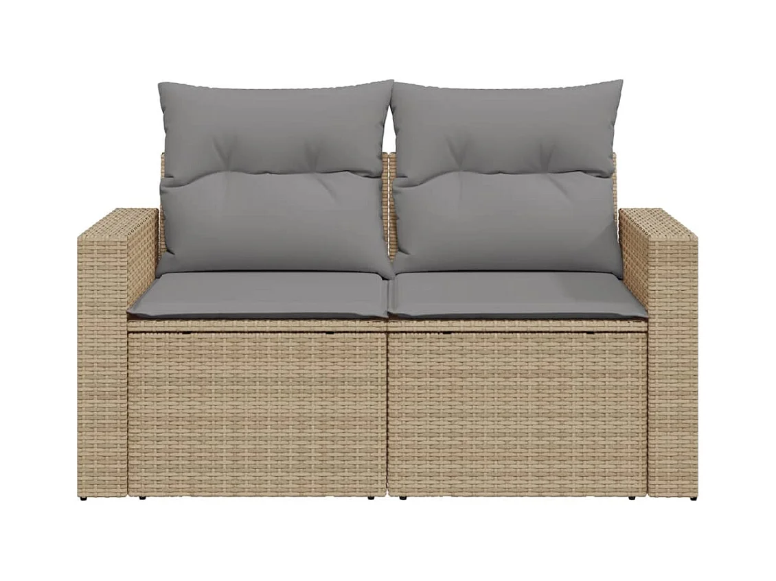 Canapé de jardin avec coussins 2 places beige résine tressée