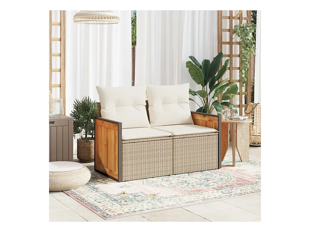 Canapé de jardin avec coussins 2 places beige résine tressée REO69490
