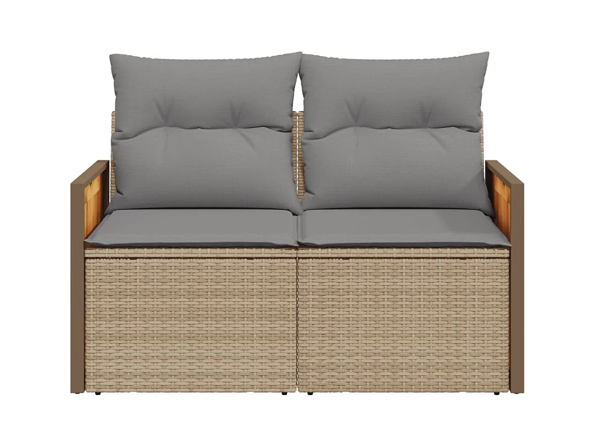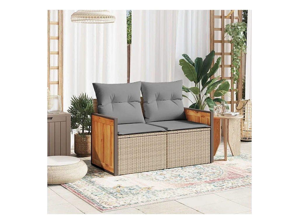 Canapé de jardin avec coussins 2 places beige résine tressée REO54992