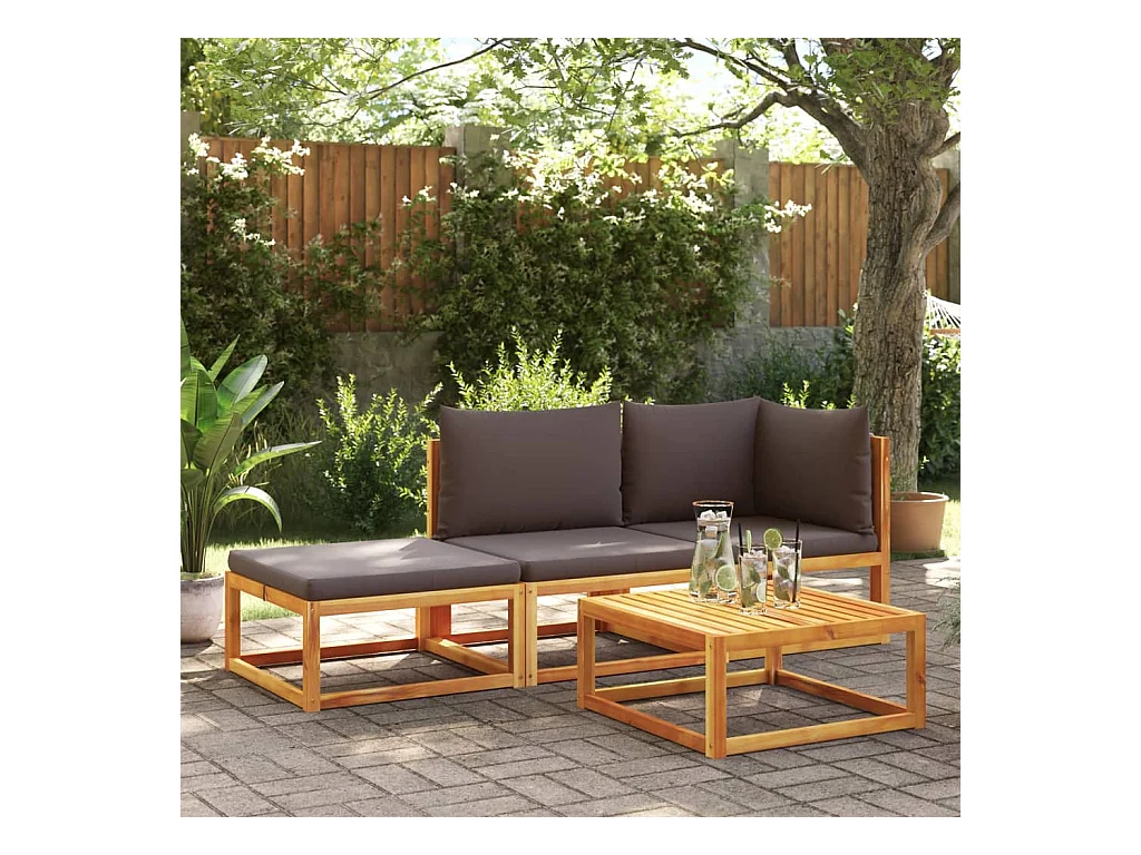 Canapé de jardin sans accoudoirs coussins bois massif d'acacia