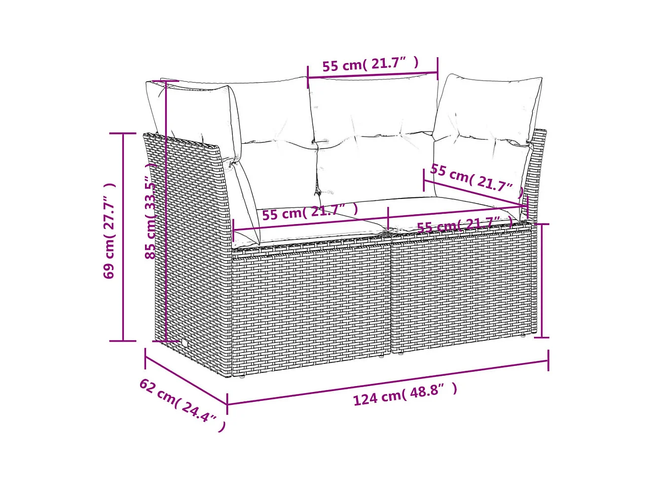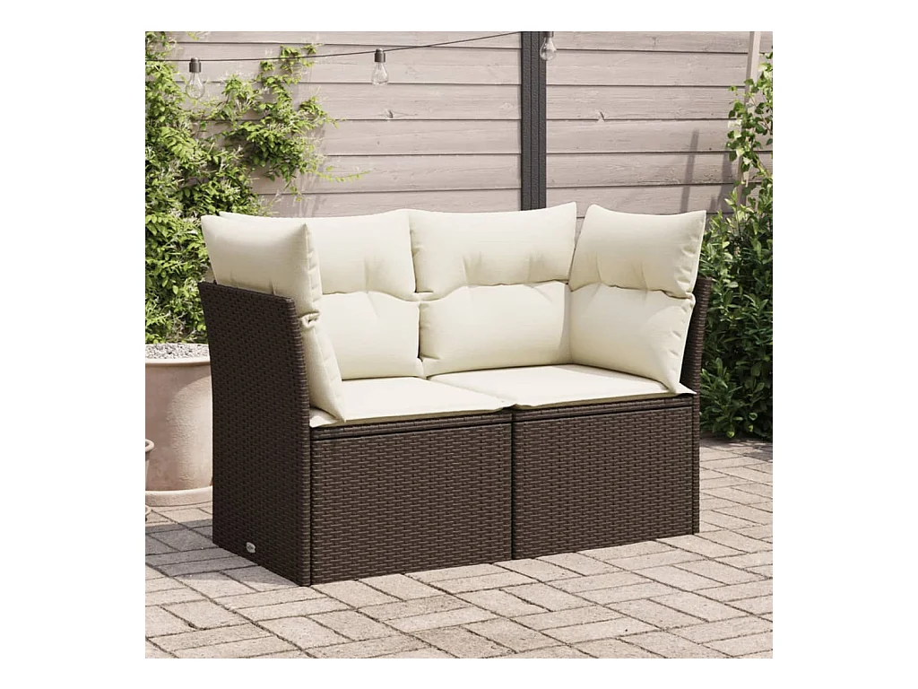 Canapé de jardin avec coussins 2 places marron résine tressée