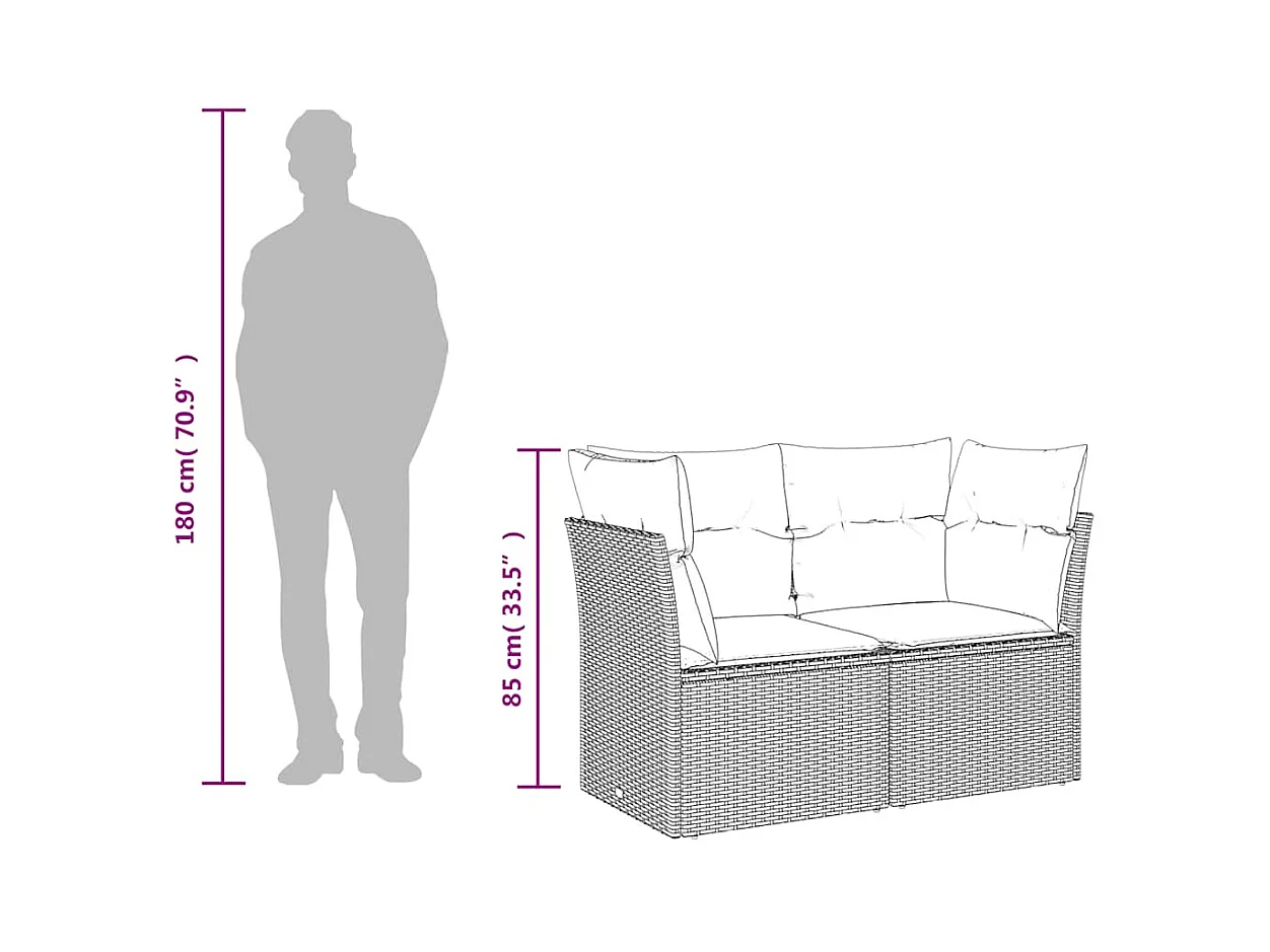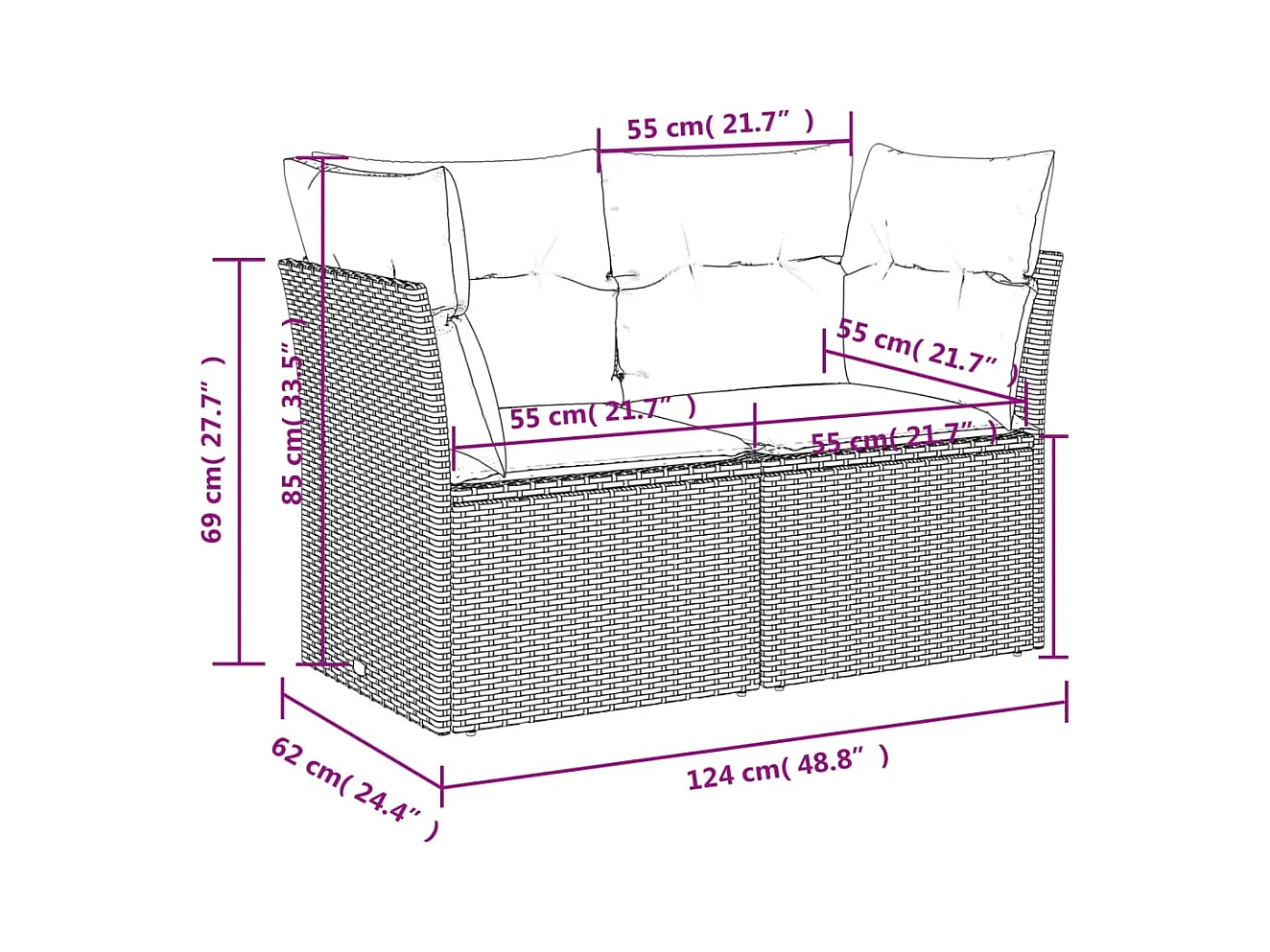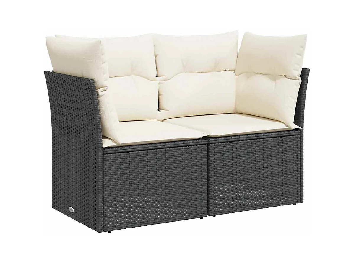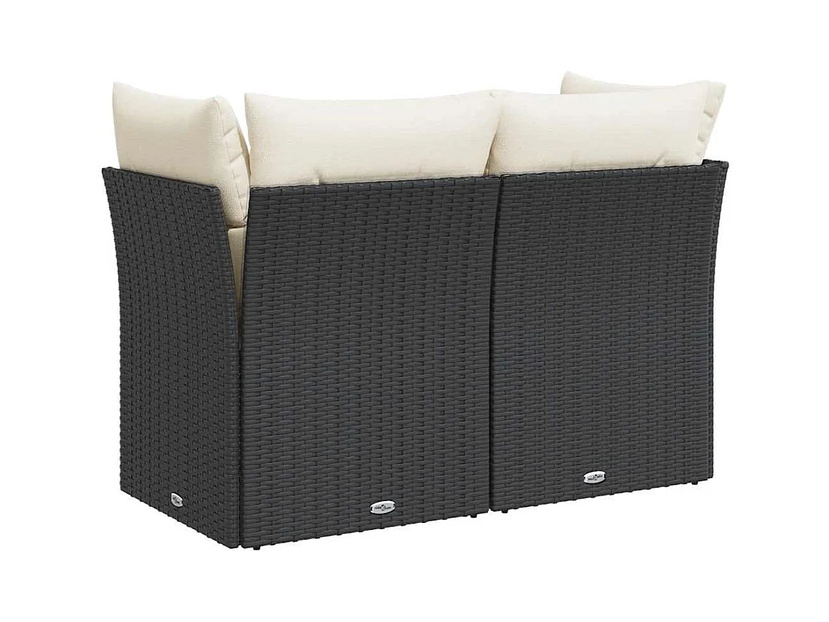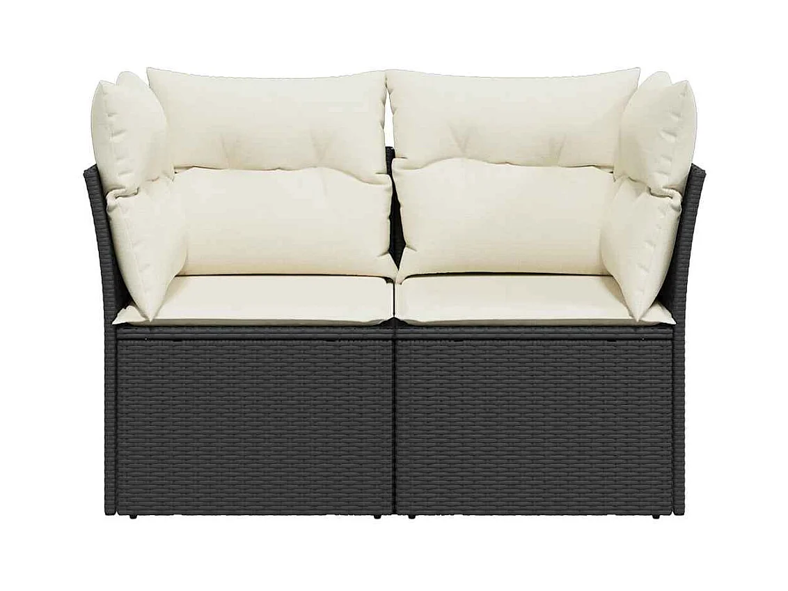 Canapé de jardin avec coussins 2 places noir résine tressée REO22692