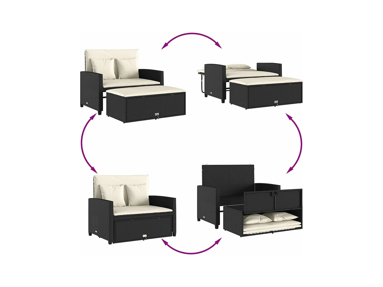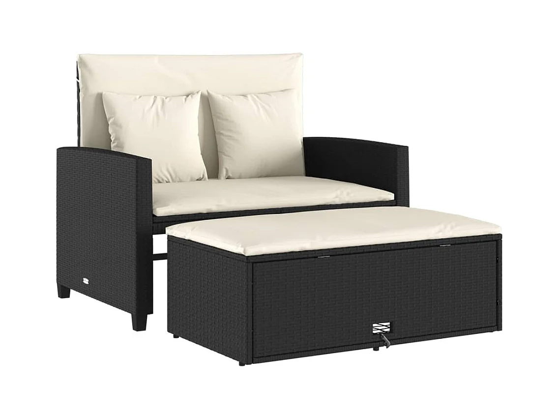 Canapé de jardin inclinable 2 places avec table noir poly rotin FR763362