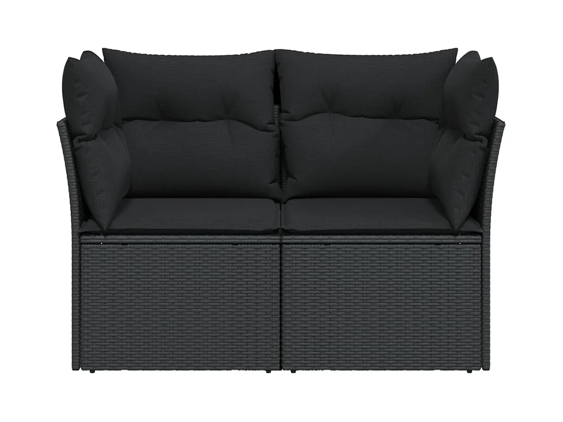 Canapé de jardin avec coussins 2 places noir résine tressée REO26280