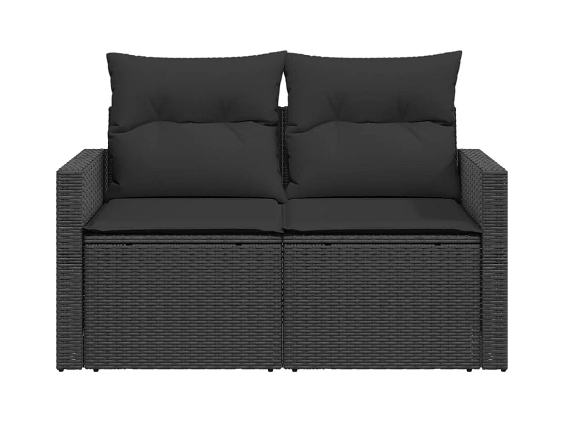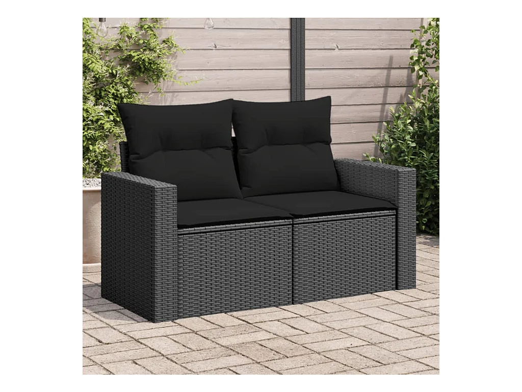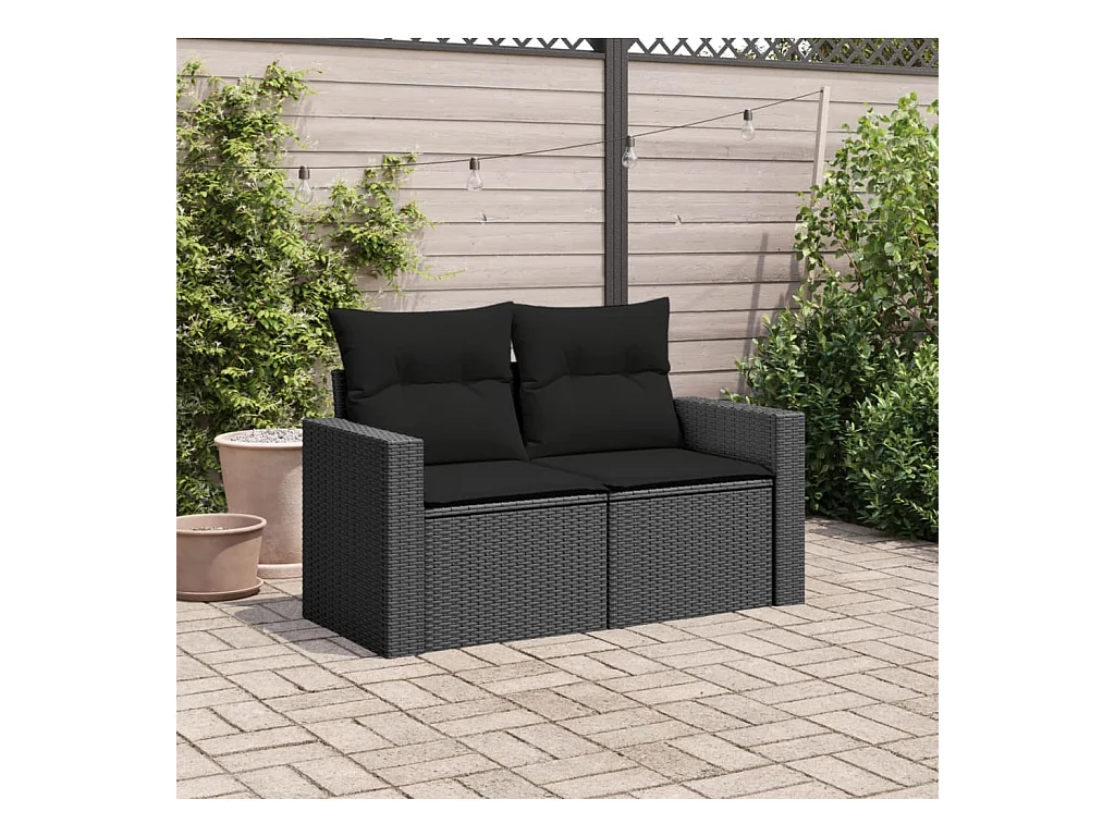 Canapé de jardin avec coussins 2 places noir résine tressée REO64887