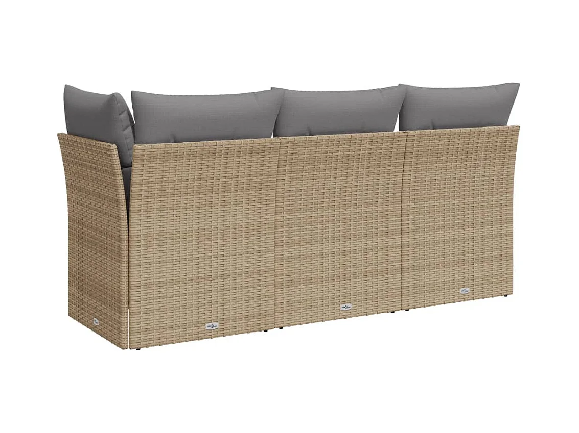Canapé de jardin avec coussins 3 places beige résine tressée
