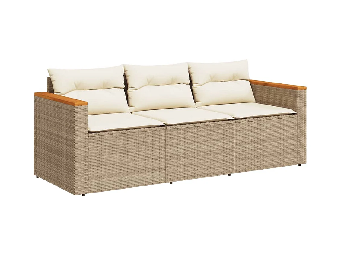 Canapé de jardin avec coussins 3 places beige résine tressée FR497163