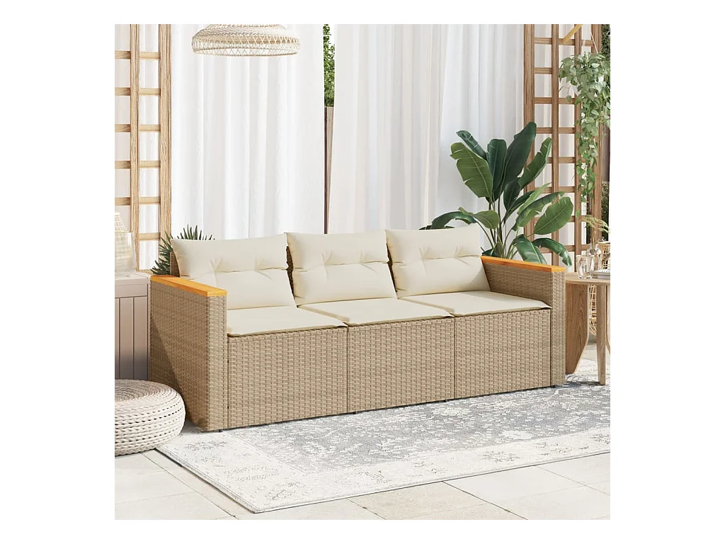 Canapé de jardin avec coussins 3 places beige résine tressée FR564404