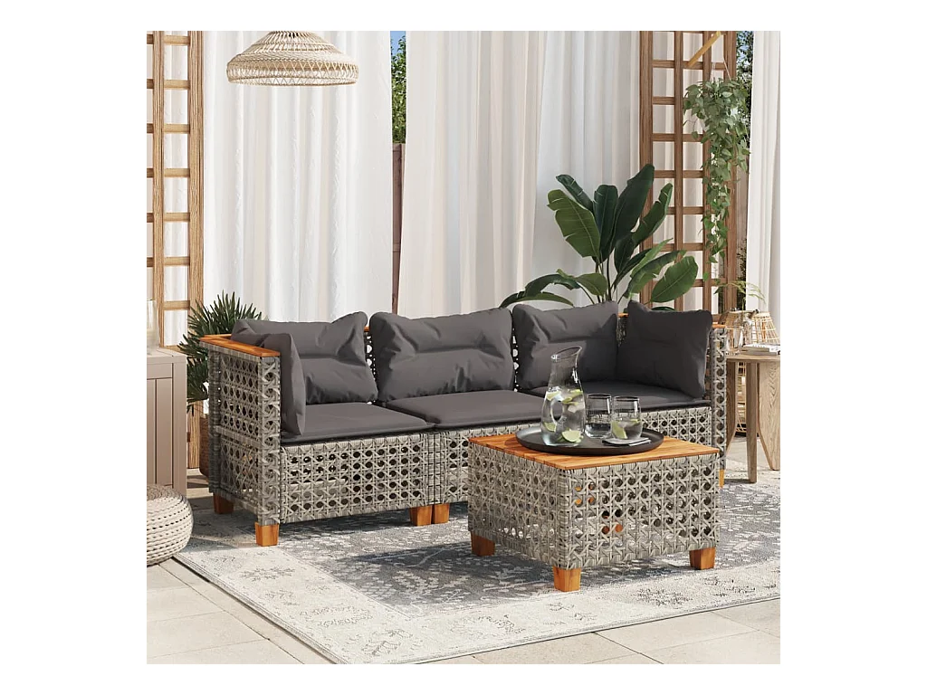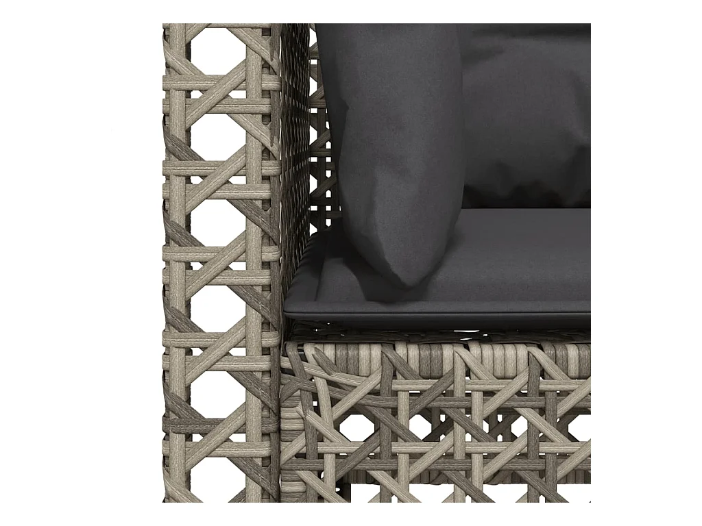 Canapé de jardin sans accoudoirs coussins gris résine tressée