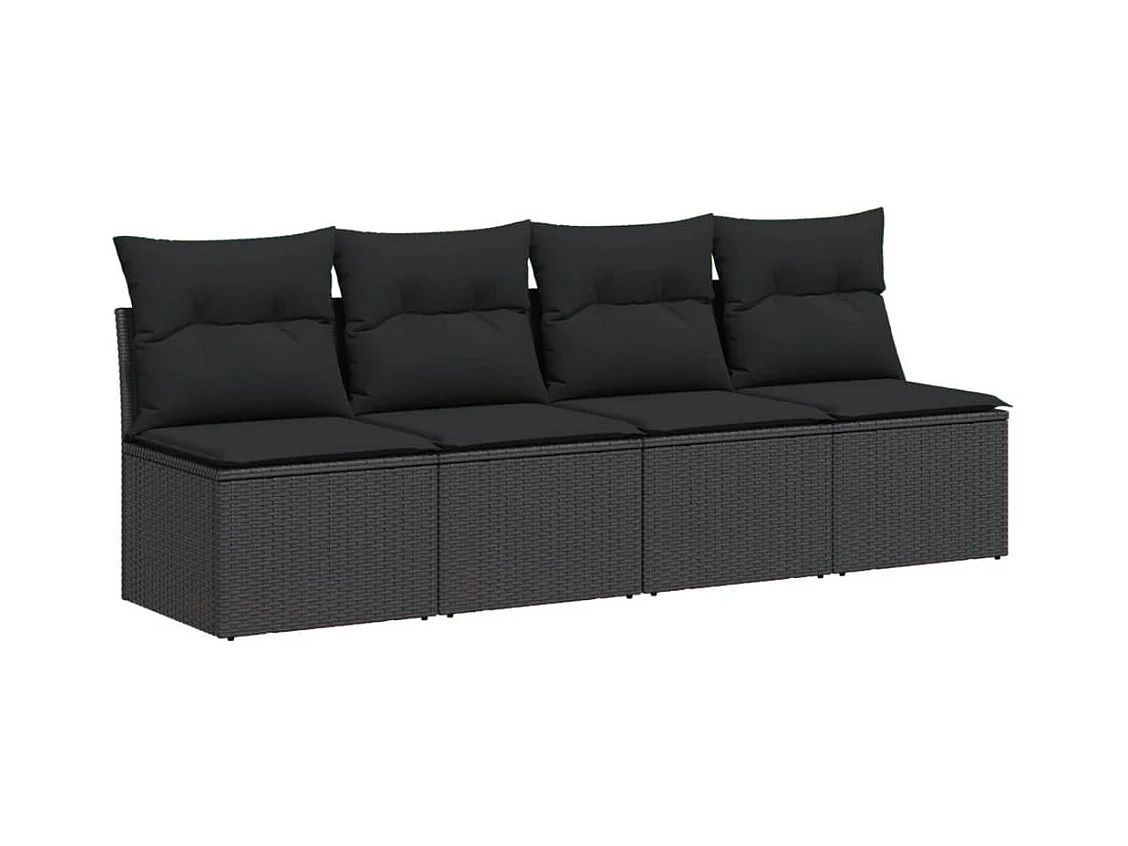 Canapé de jardin avec coussins 4 places noir résine tressée REO97164
