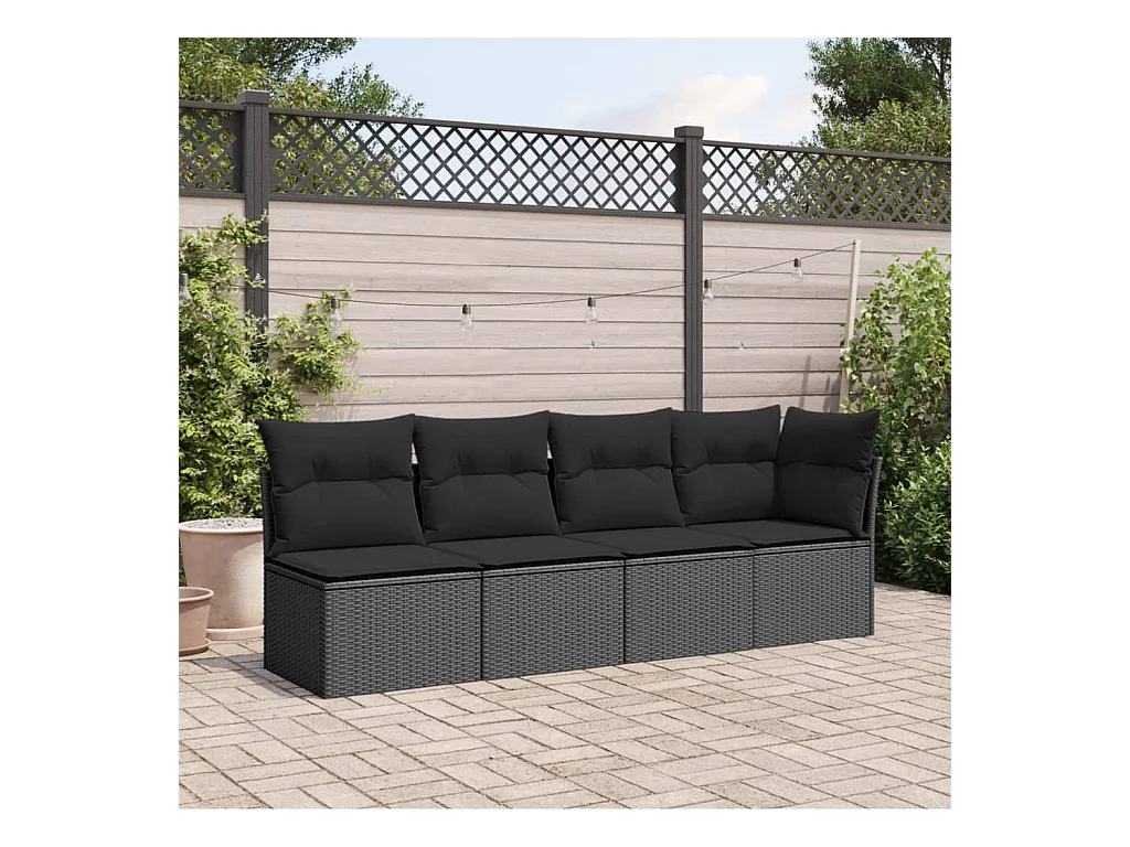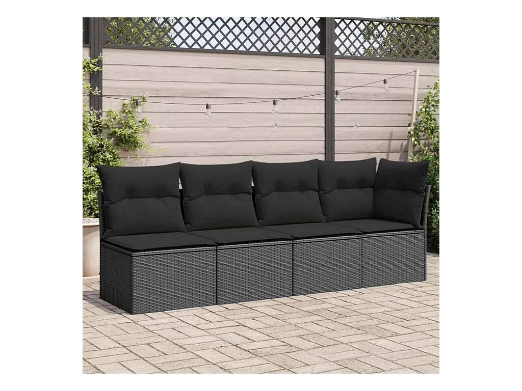 Canapé de jardin avec coussins 4 places noir résine tressée REO24395