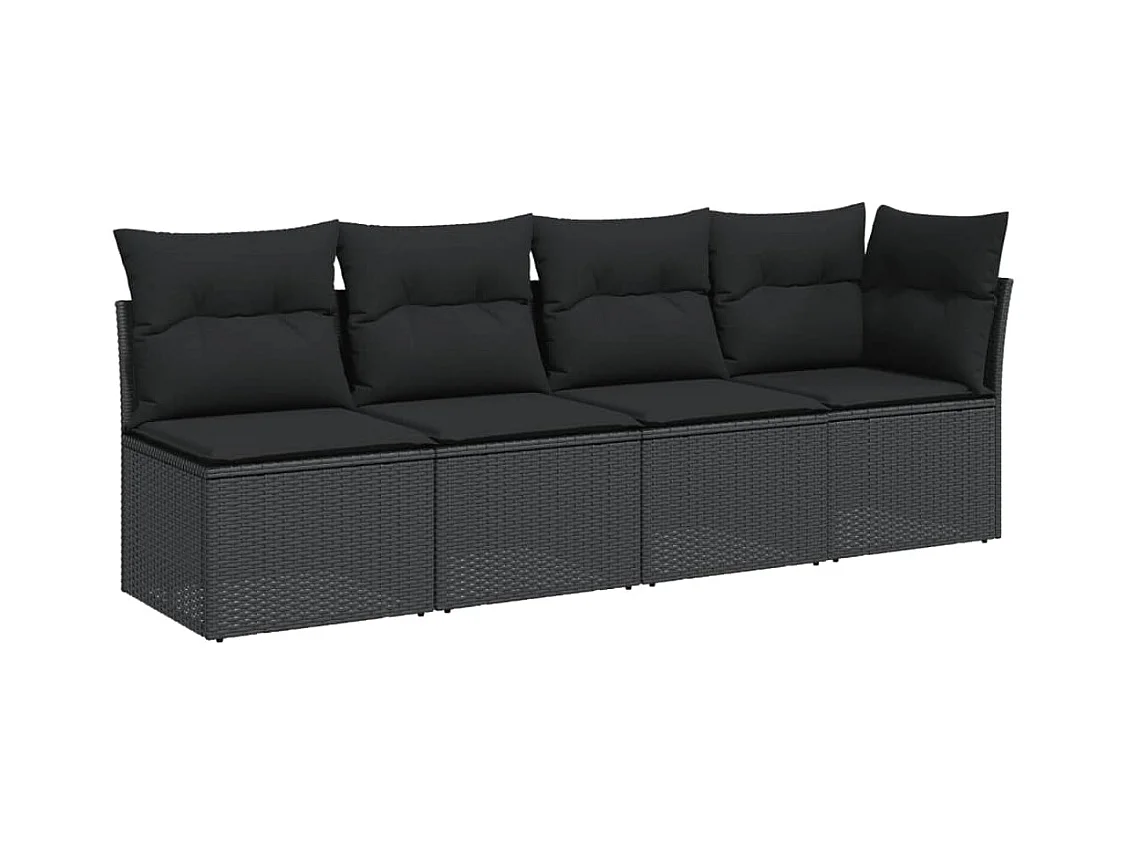 Canapé de jardin avec coussins 4 places noir résine tressée REO97164