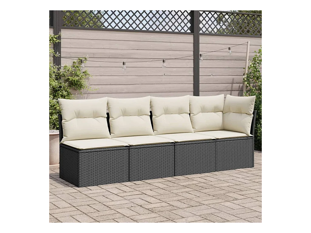 Canapé de jardin avec coussins 4 places noir résine tressée REO97164