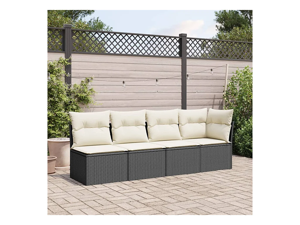 Canapé de jardin avec coussins 4 places noir résine tressée REO24395