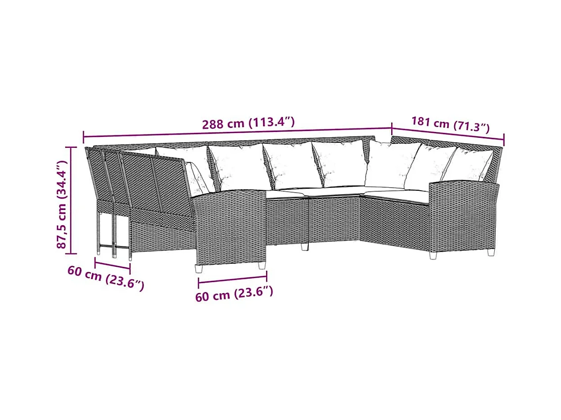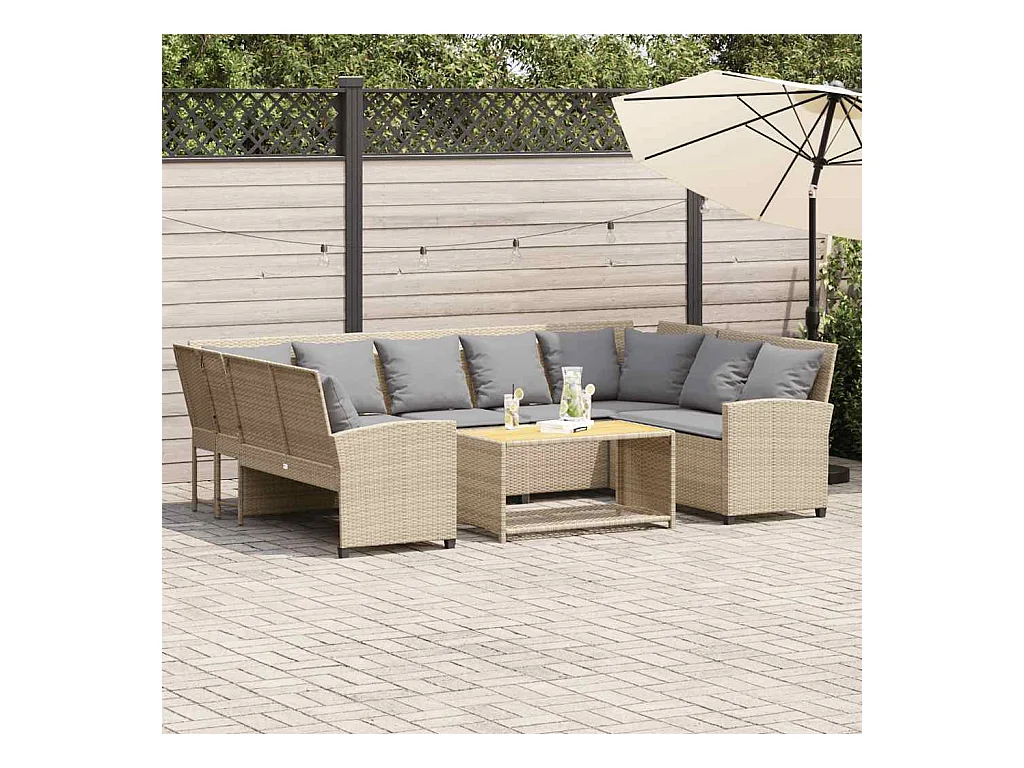 Canapé de jardin avec table et coussins en forme de L beige FR131949