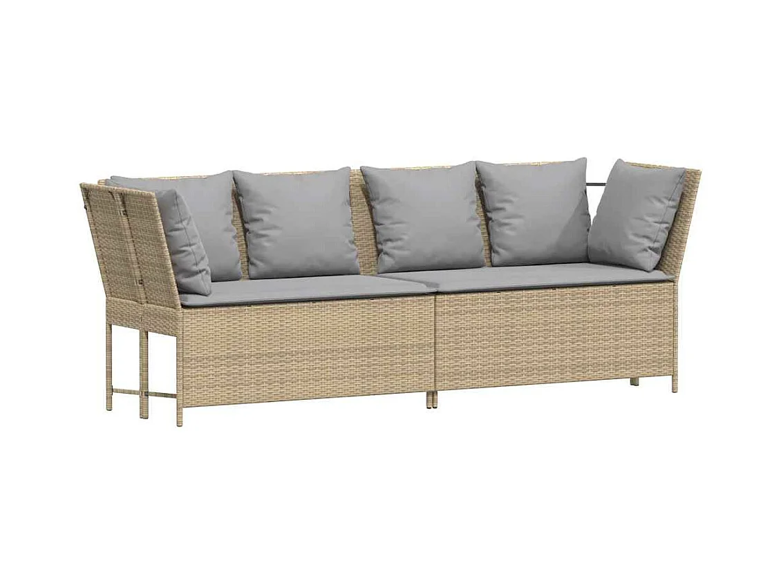 Canapé de jardin avec coussins 3 places beige résine tressée FR564404