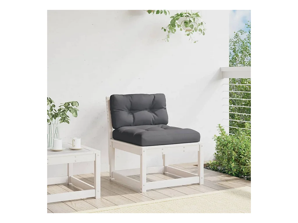 Canapé de jardin avec coussins blanc bois de pin solide FR472742
