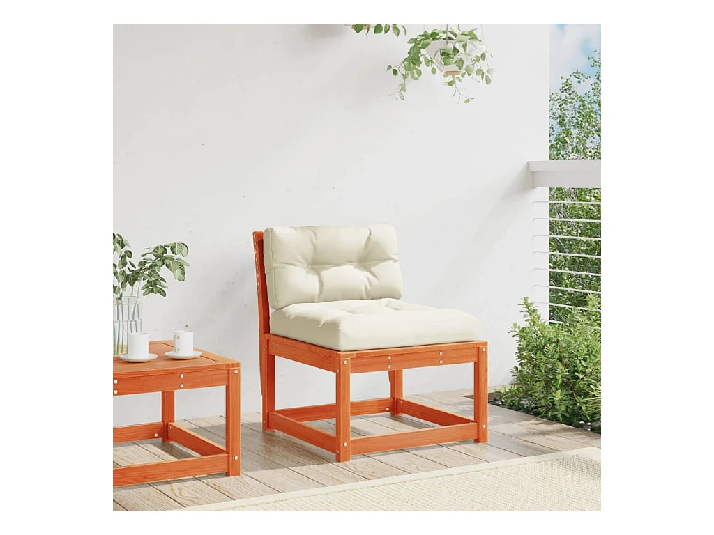 Canapé de jardin accoudoirs et coussins cire marron massif pin FR140401