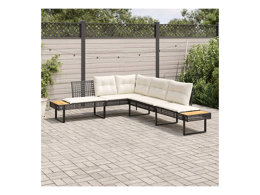 Canapé de jardin avec coussins en forme de L noir rotin acacia FR392988