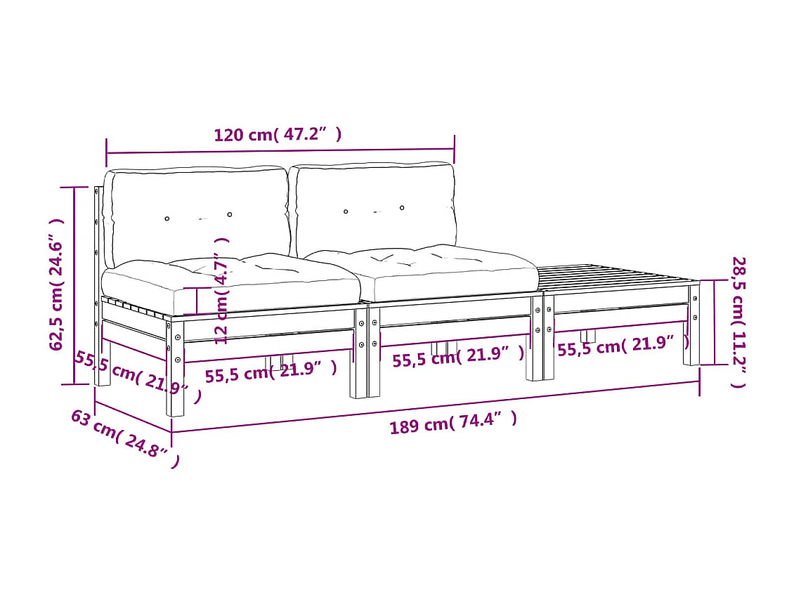 Canapés de jardin sans accoudoirs 2 pcs bois pin imprégné
