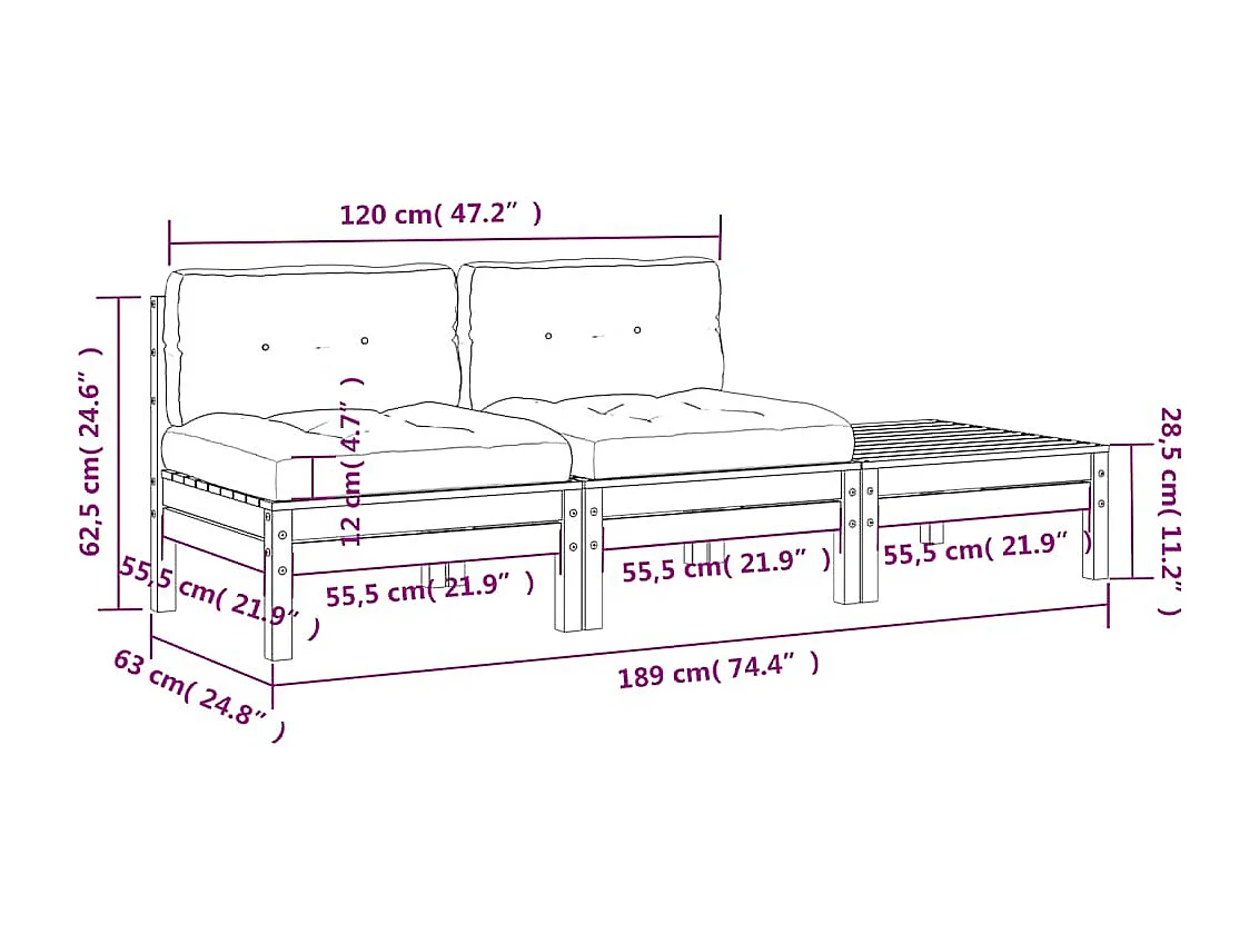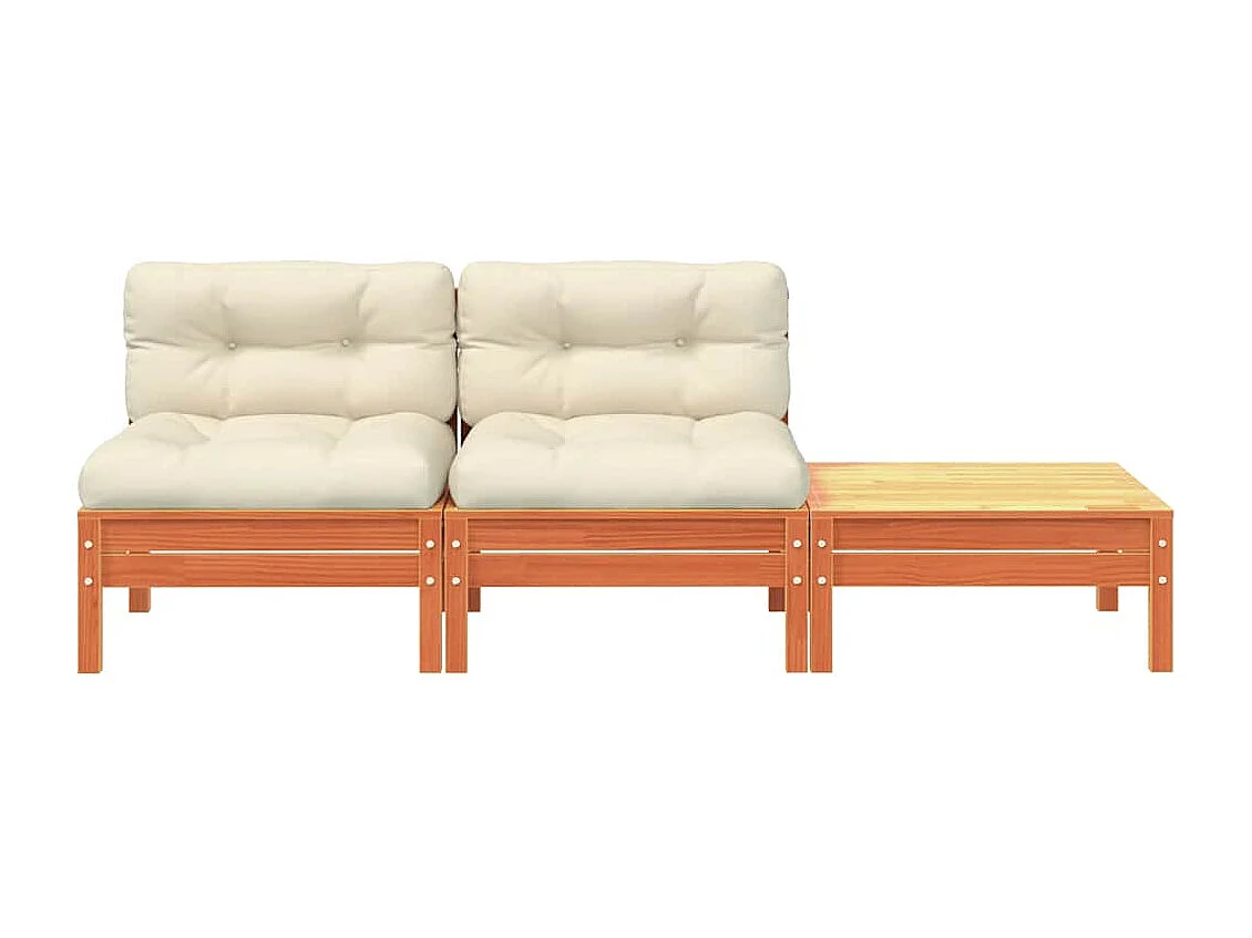 Canapés de jardin sans accoudoirs coussins 2pcs bois massif pin