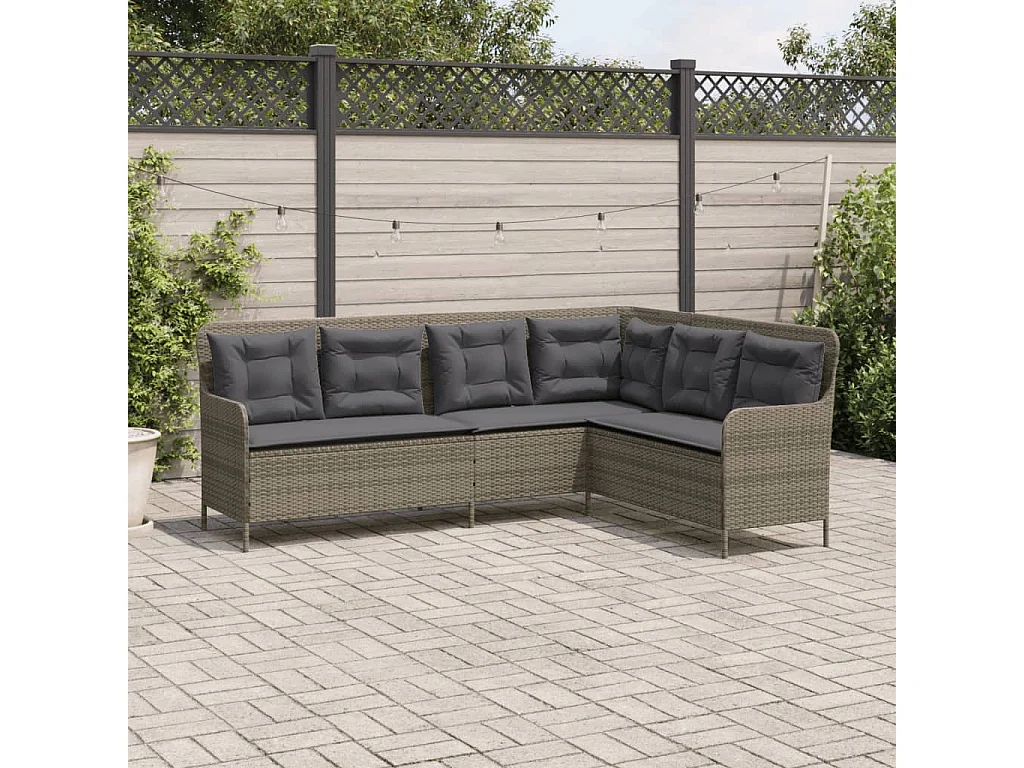Canapé de jardin avec coussins forme de L gris résine tressée