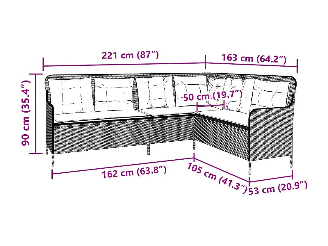 Canapé d'angle de jardin avec coussins gris résine tressée