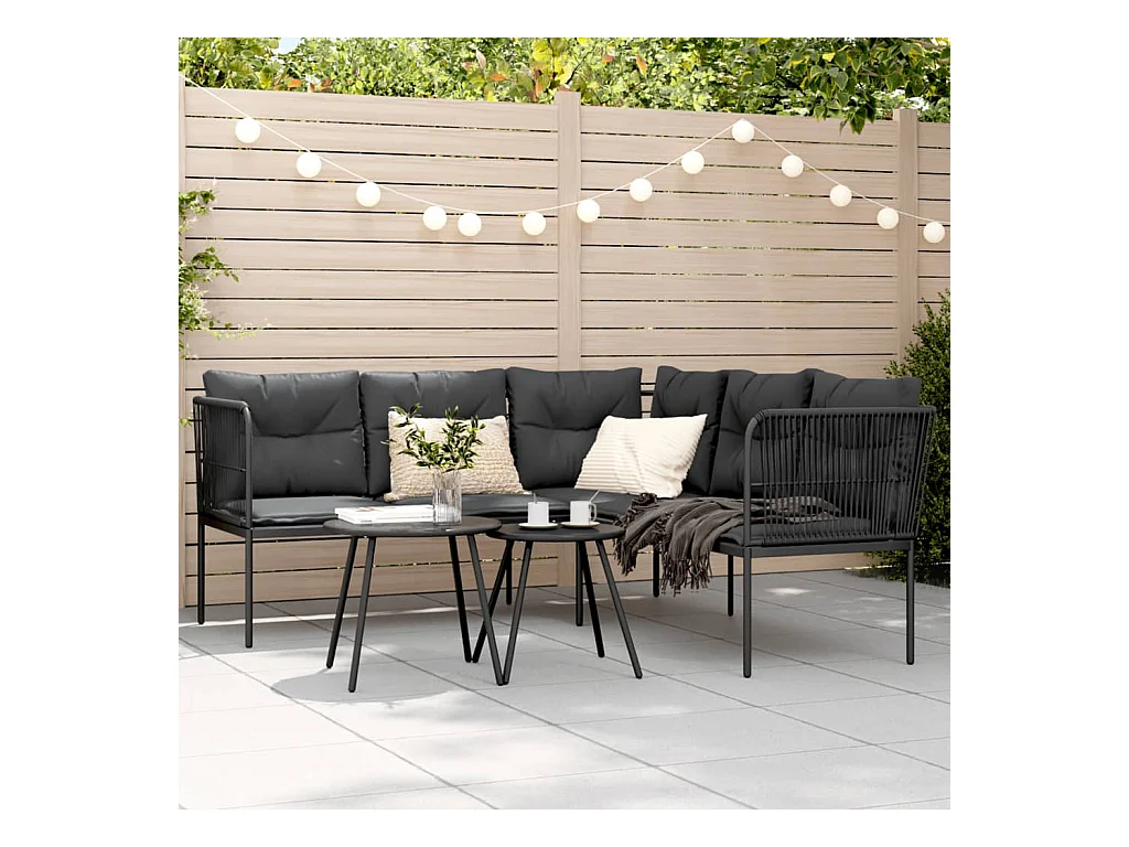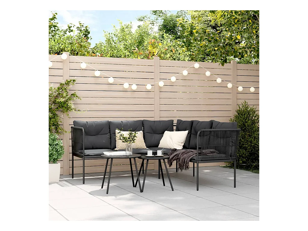 Canapé de jardin avec table et coussins en forme de L noir FR504433