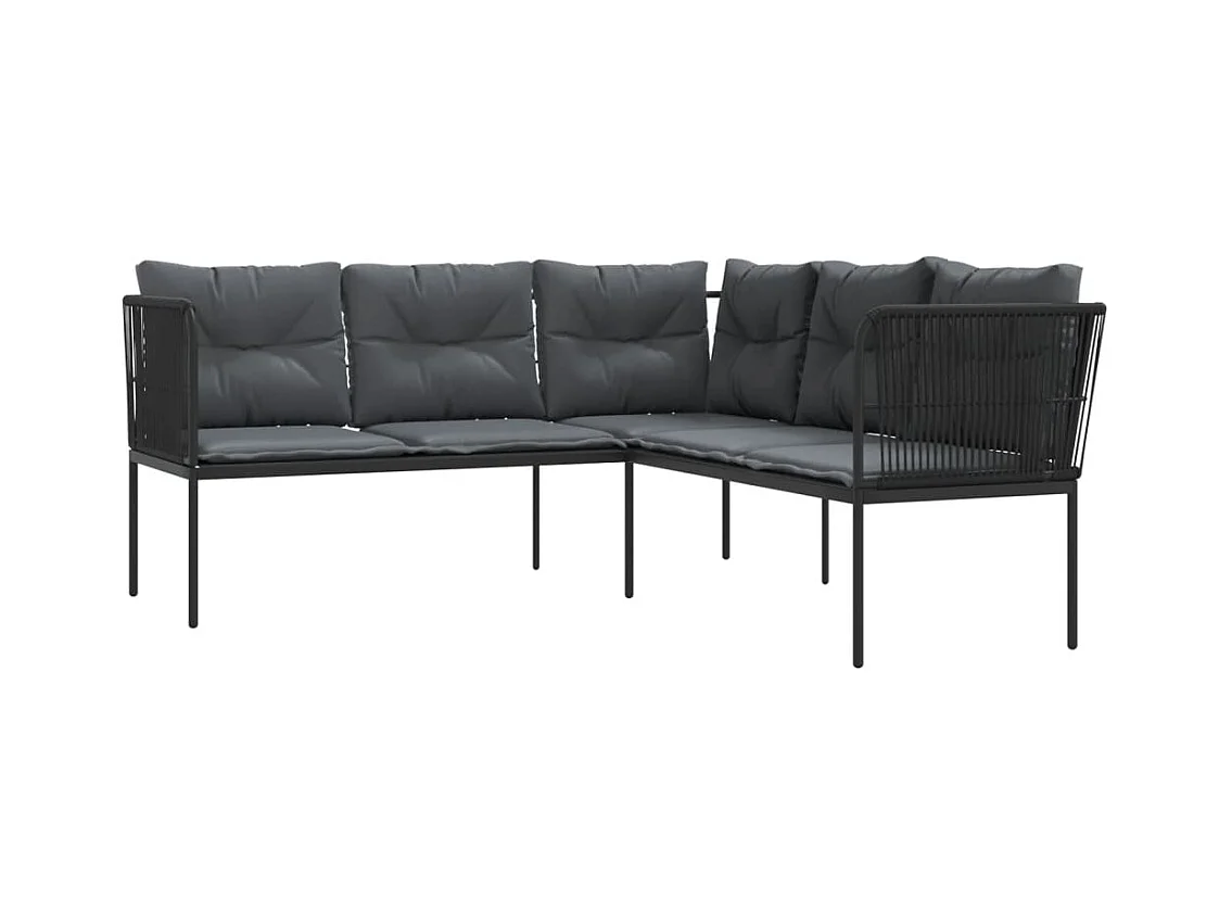 Canapé de jardin avec coussins forme de L noir acier textilène FR616691