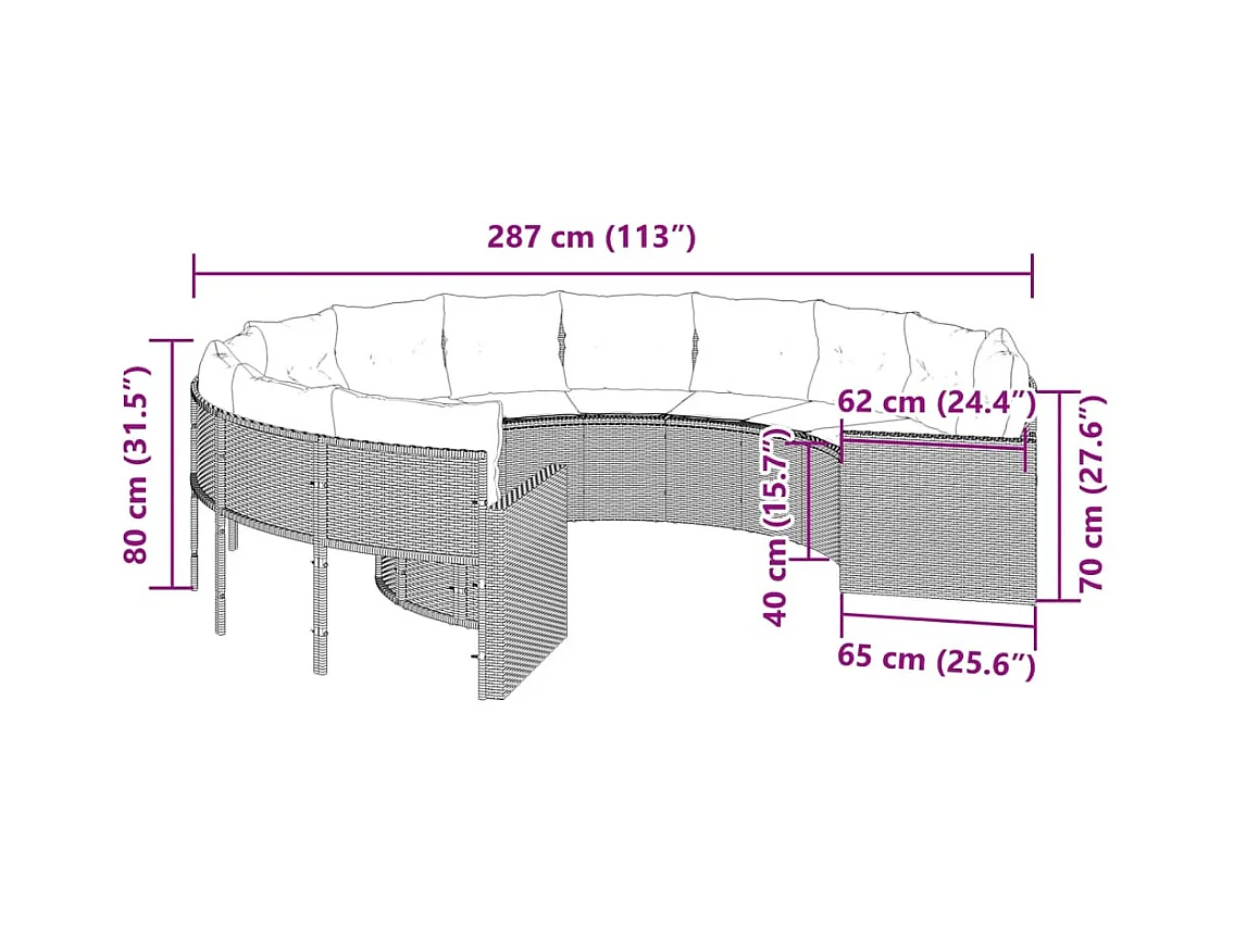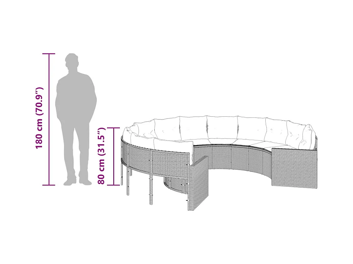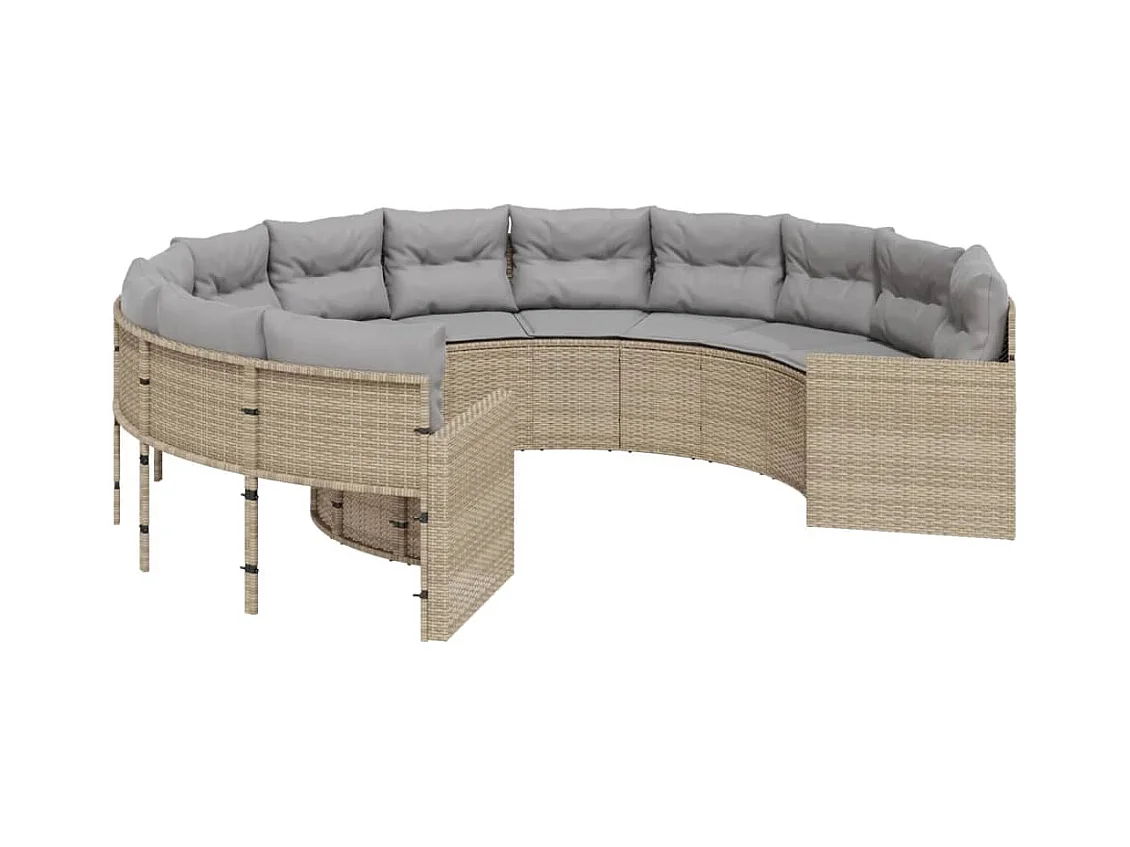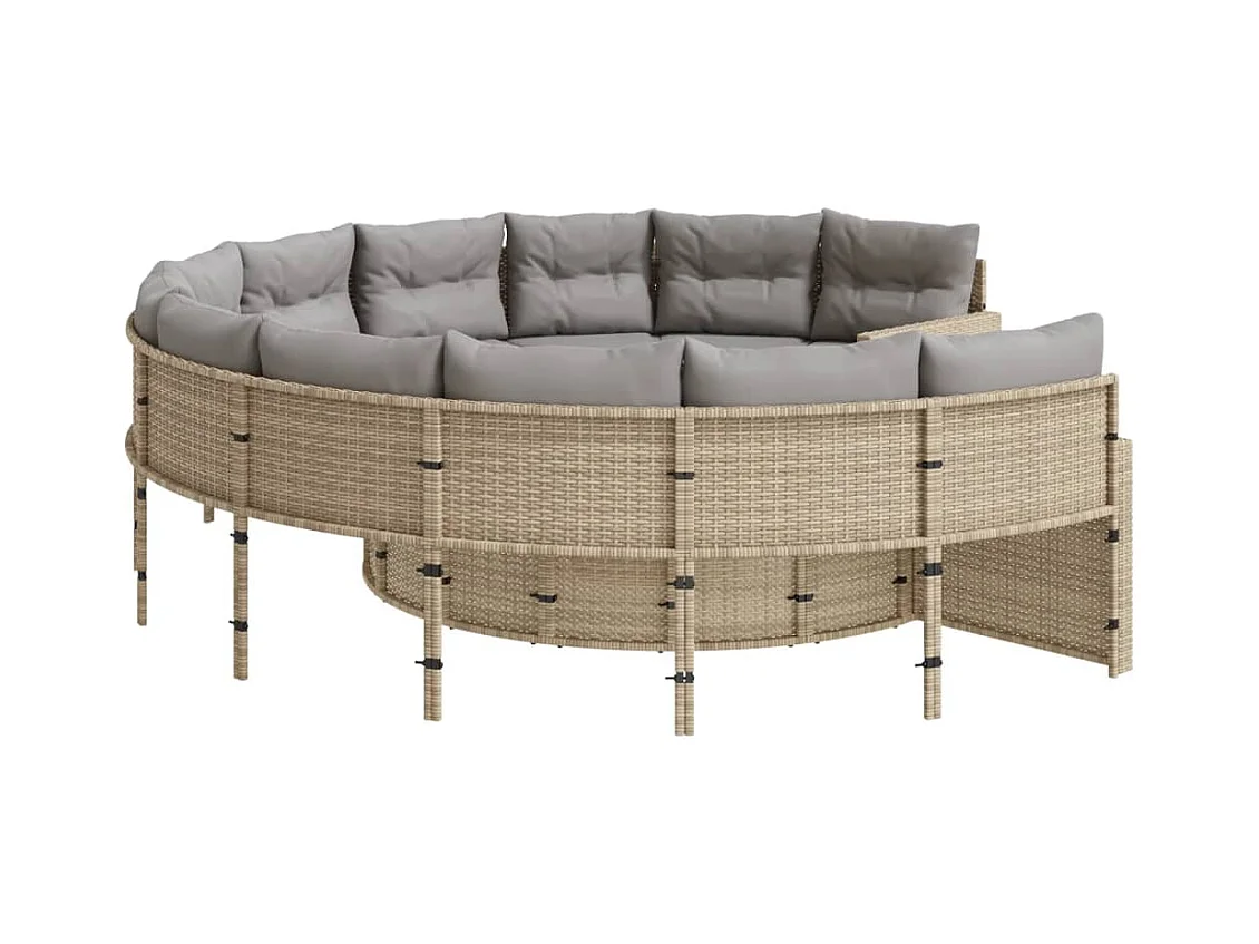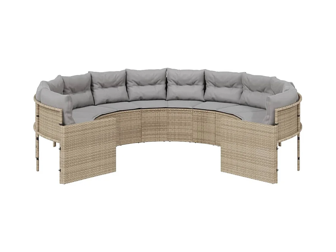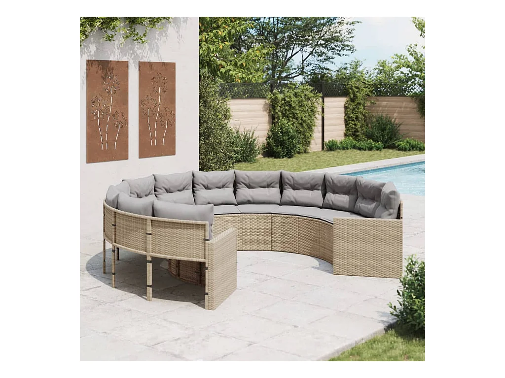Canapé de jardin avec coussins demi-rond beige résine tressée