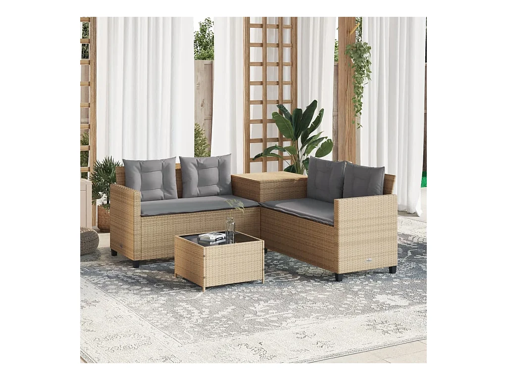 Canapé de jardin avec table et coussins en forme de L beige