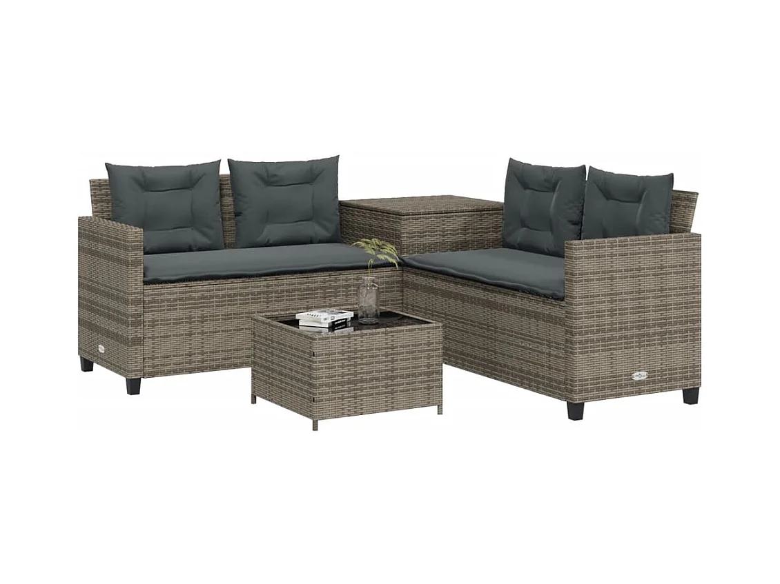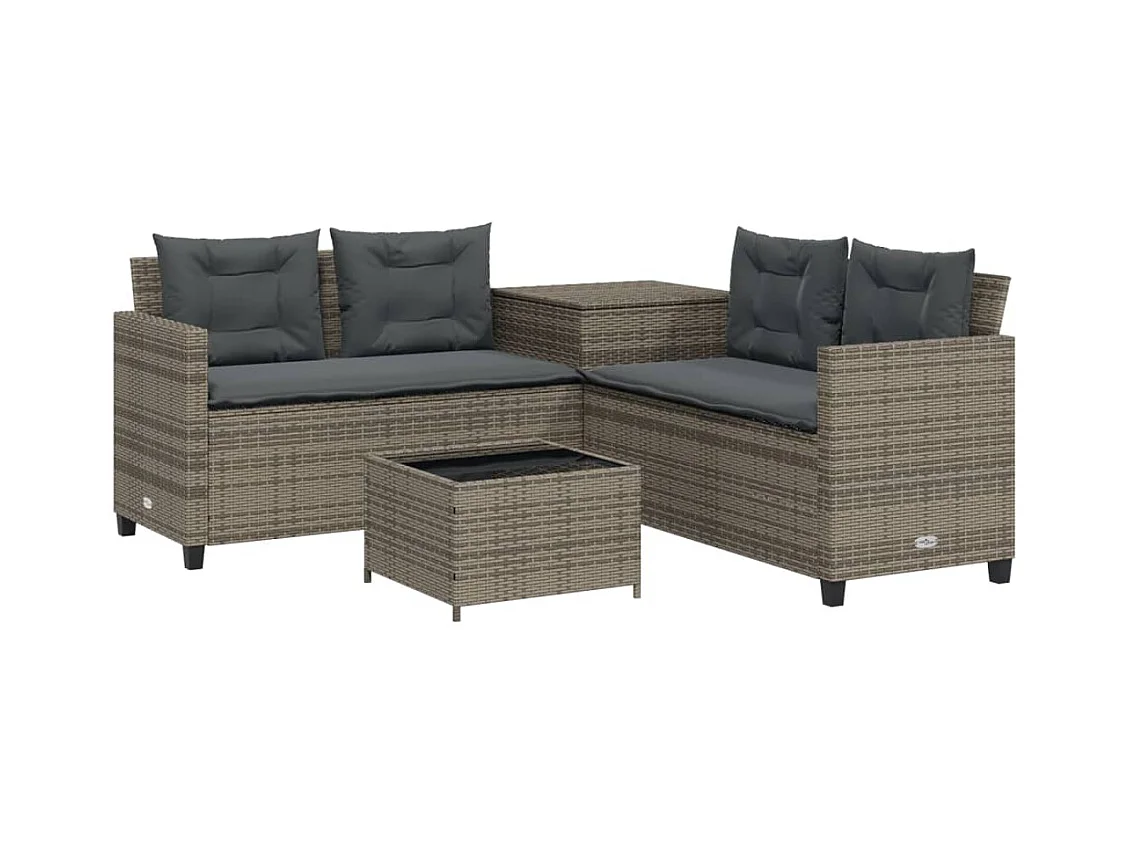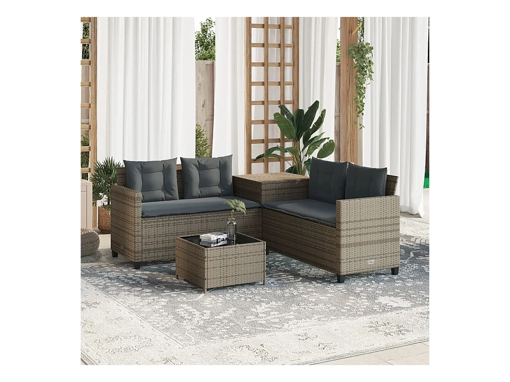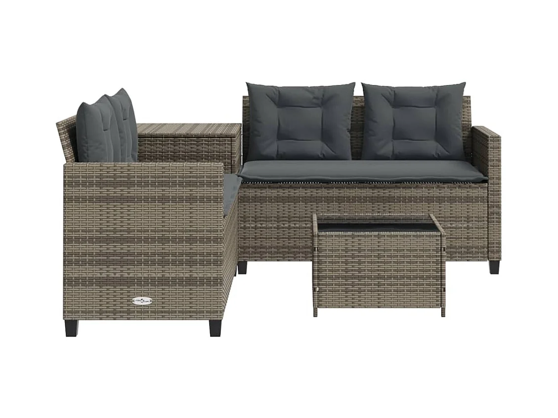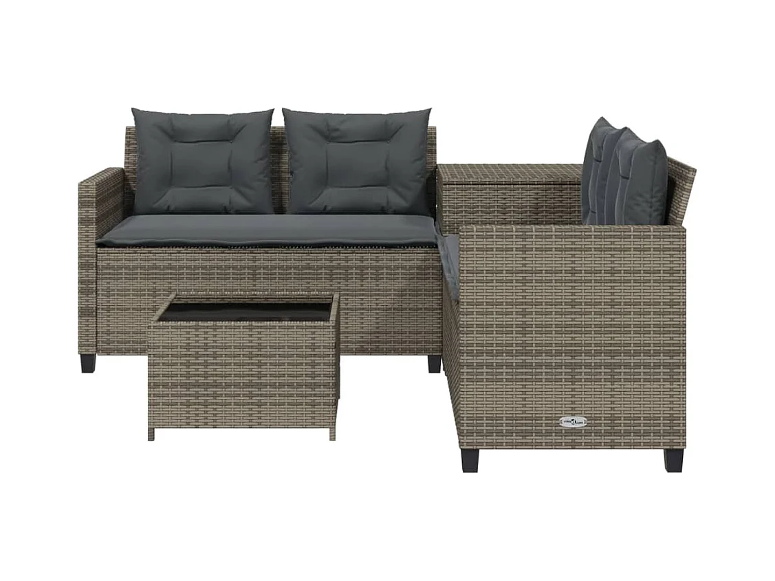 Canapé de jardin avec table et coussins en forme de L gris FR107826