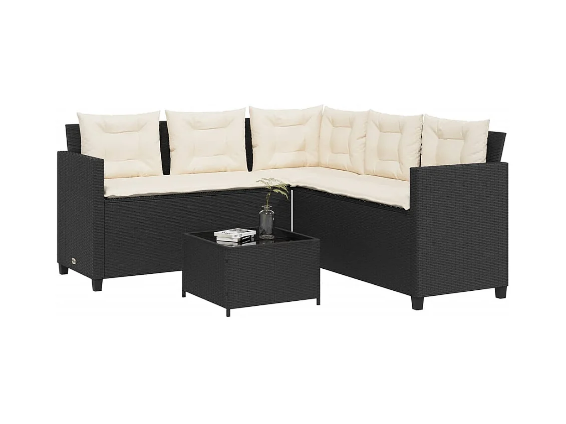 Canapé de jardin 2 places avec table et tabourets noir rotin