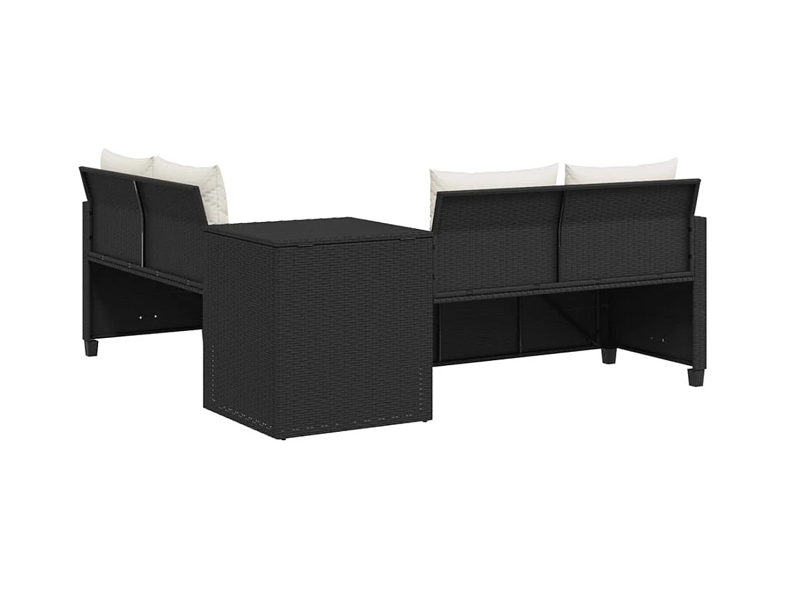 Canapé de jardin 2 places avec table et tabourets noir rotin