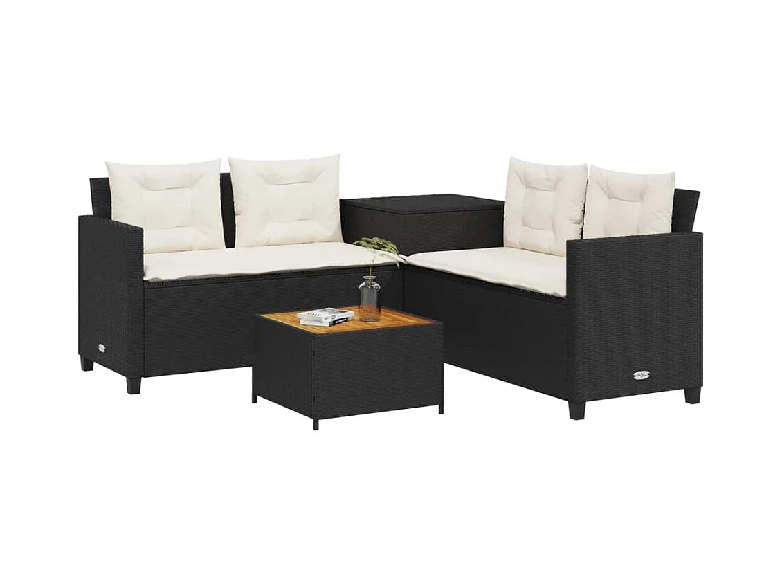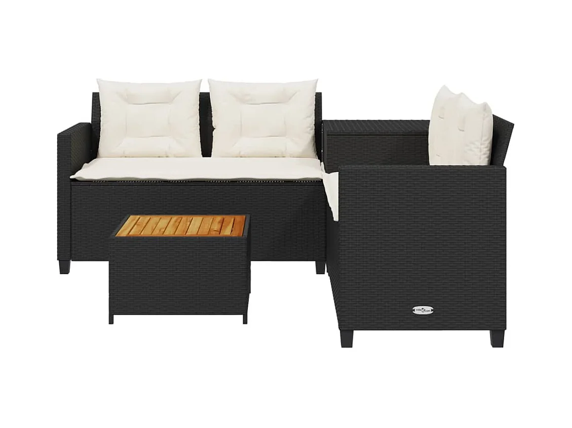 Canapé de jardin avec table et coussins en forme de L noir