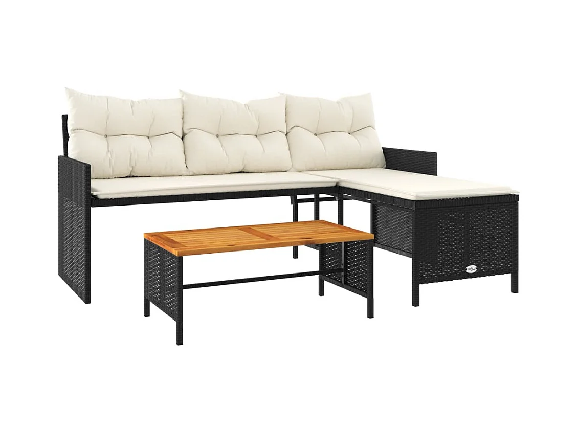 Canapé de jardin avec table et coussins en forme de L noir FR885146