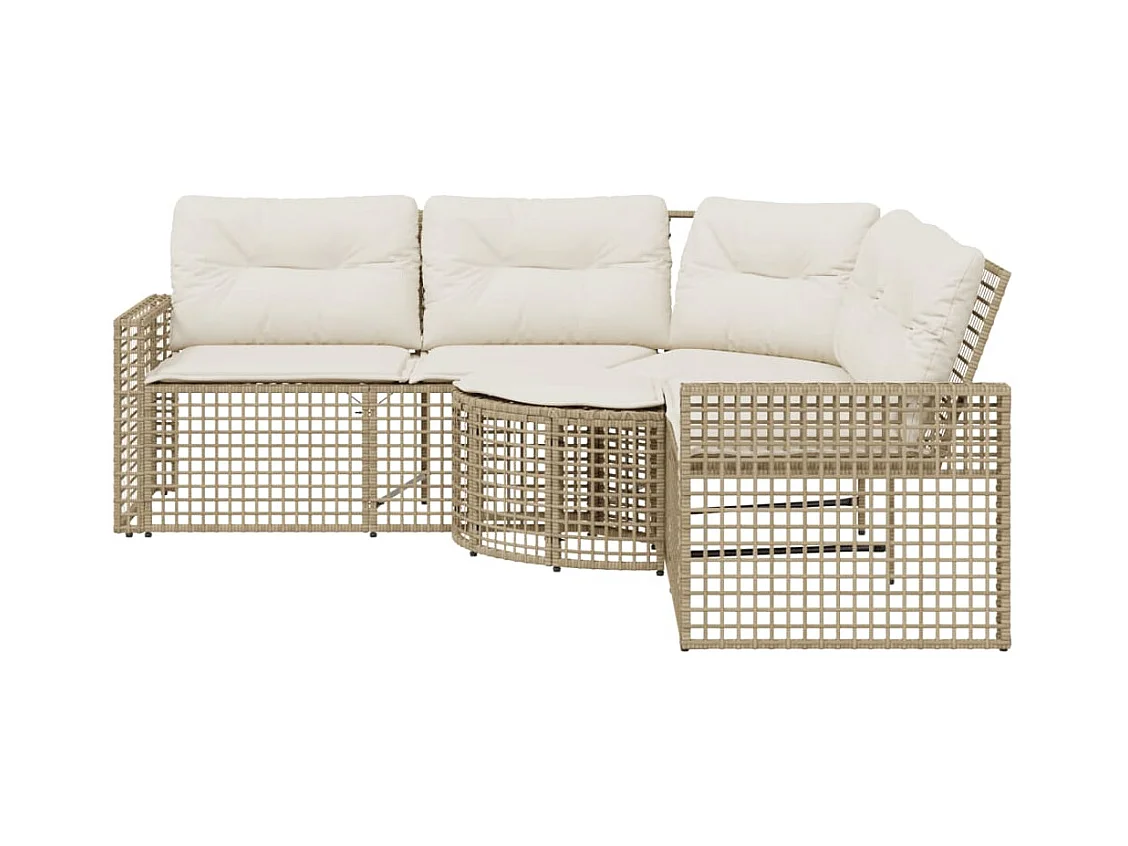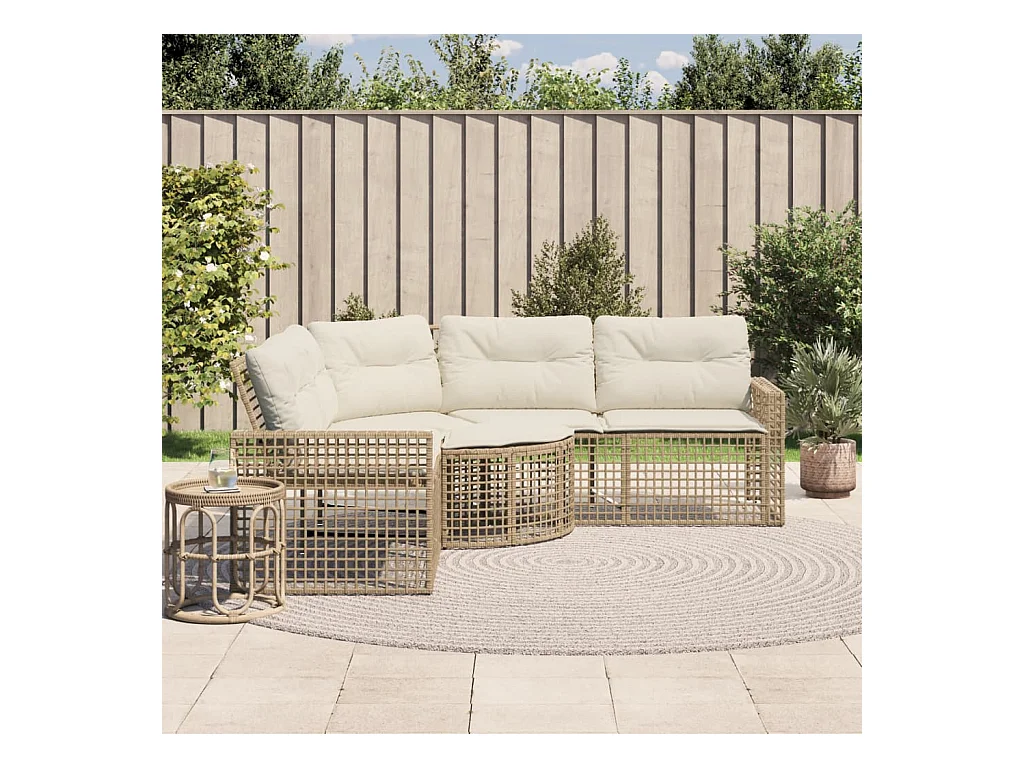 Canapé de jardin avec coussins demi-rond beige résine tressée
