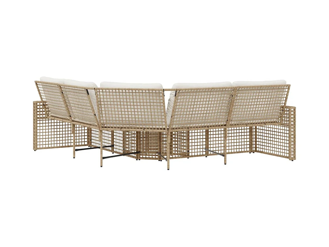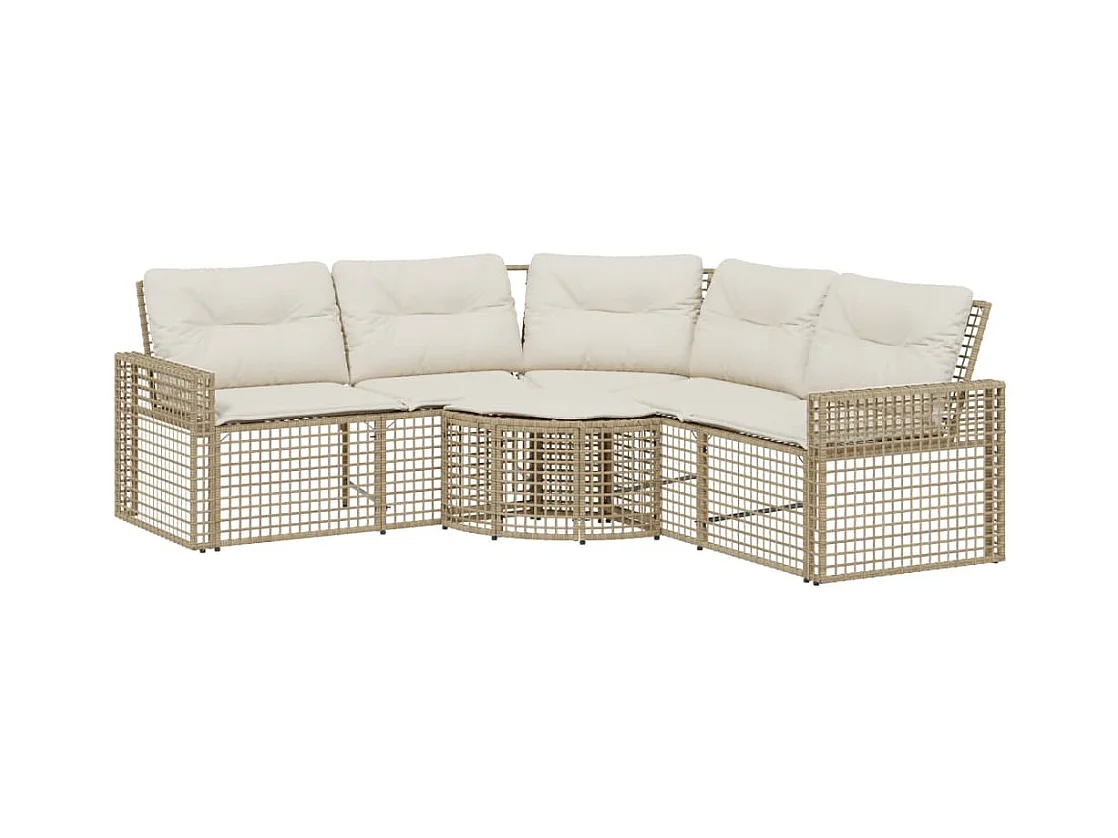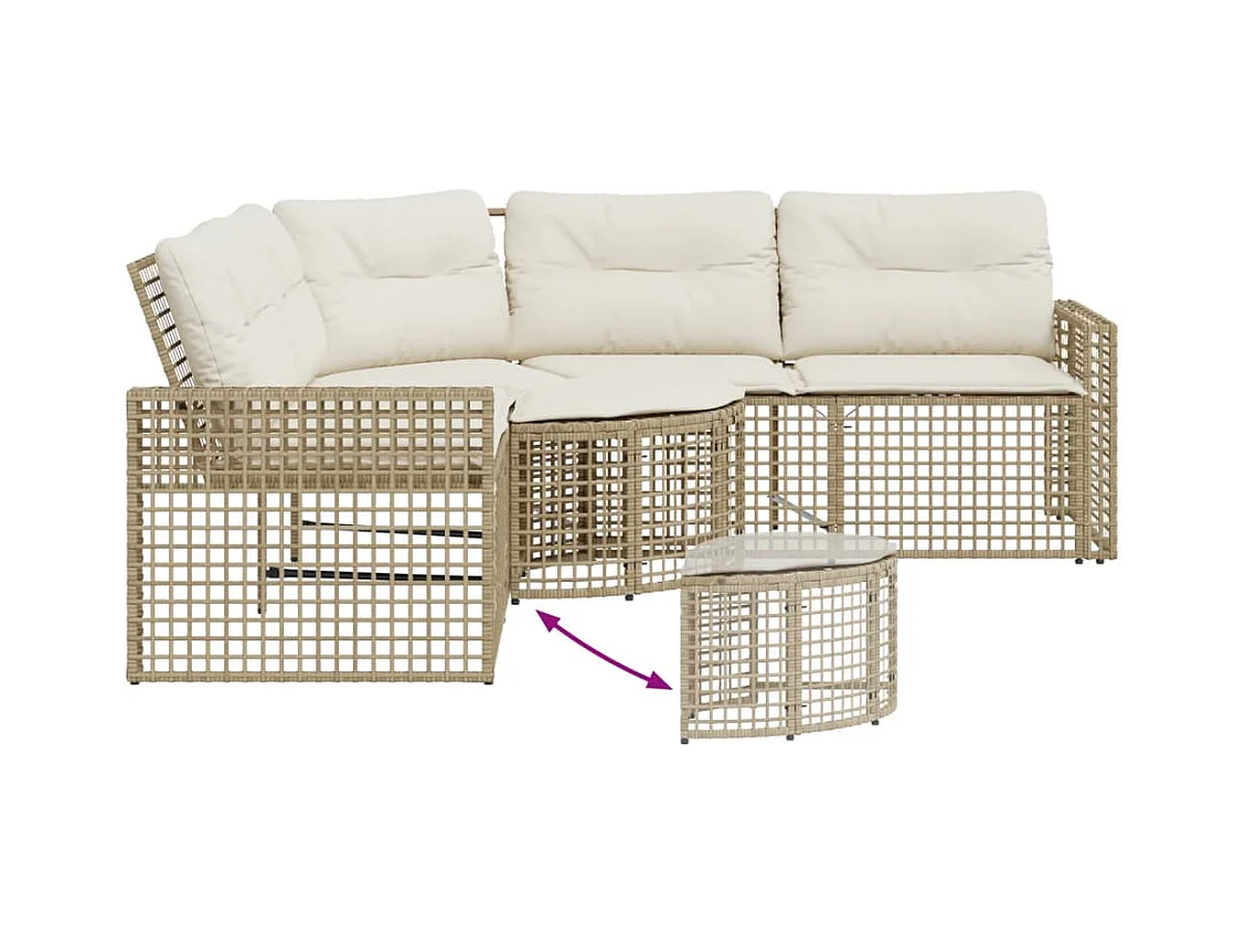 Canapé d'angle de jardin avec coussins beige résine tressée