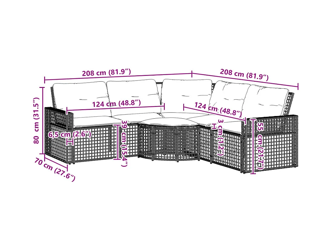 Canapé de jardin et coussins et repose-pied en forme de L rotin
