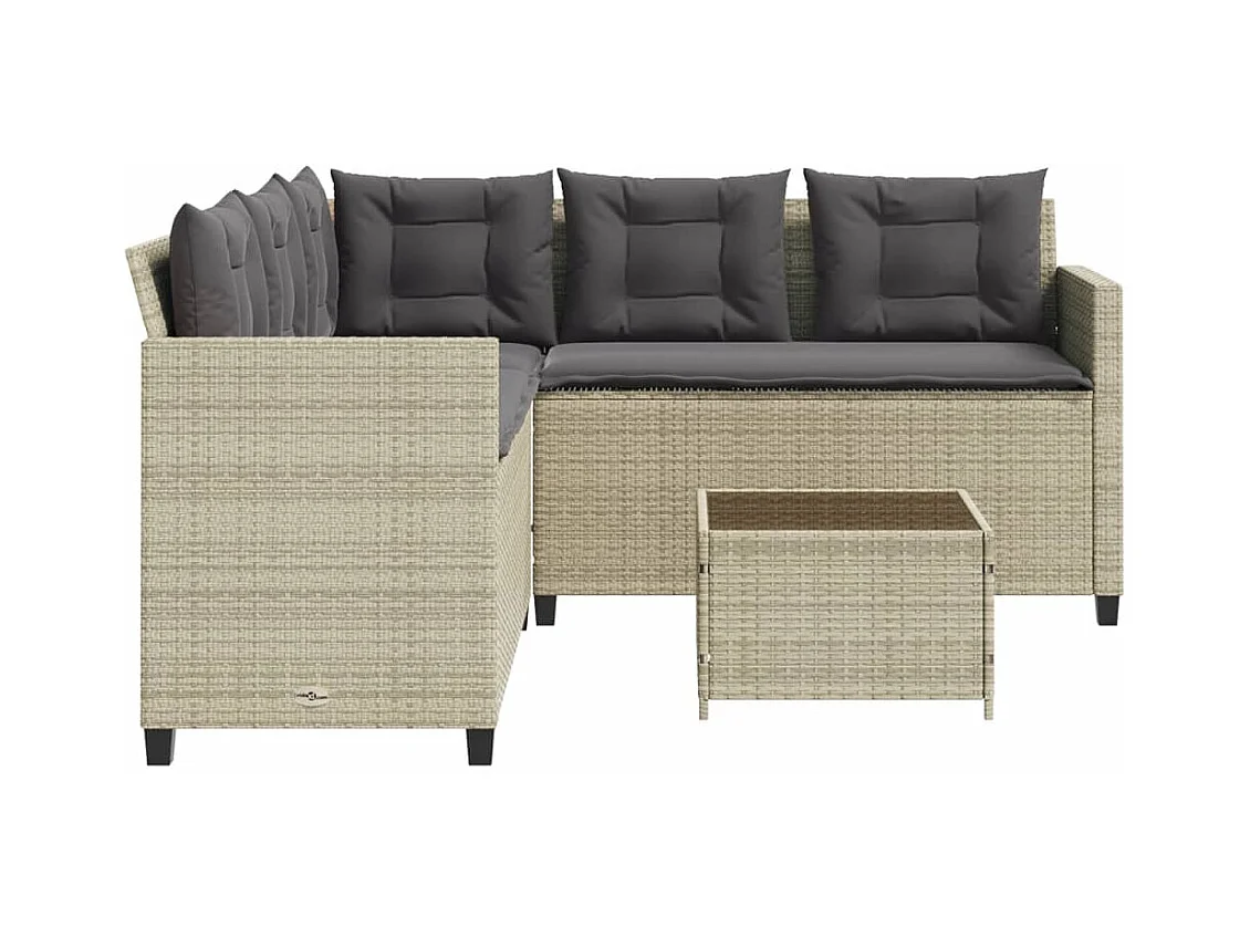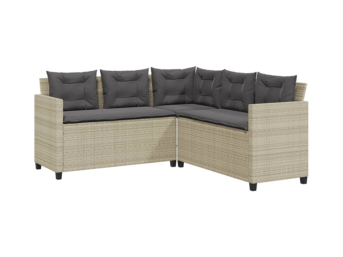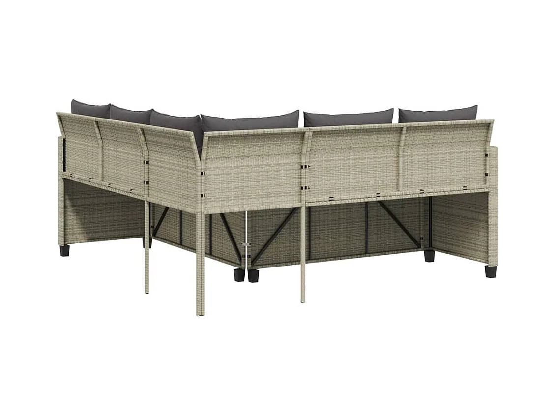Canapé de jardin 2 places avec table tabourets gris clair rotin