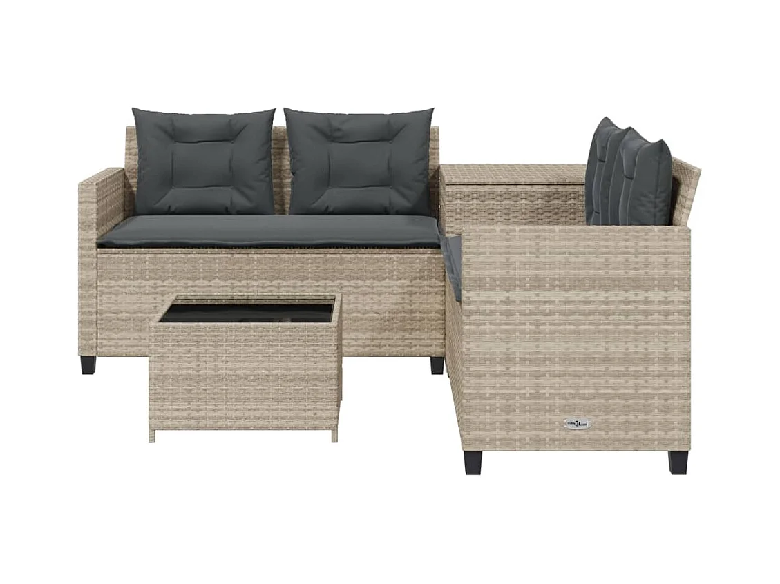 Canapé de jardin et table et coussins en forme de L gris clair FR661542
