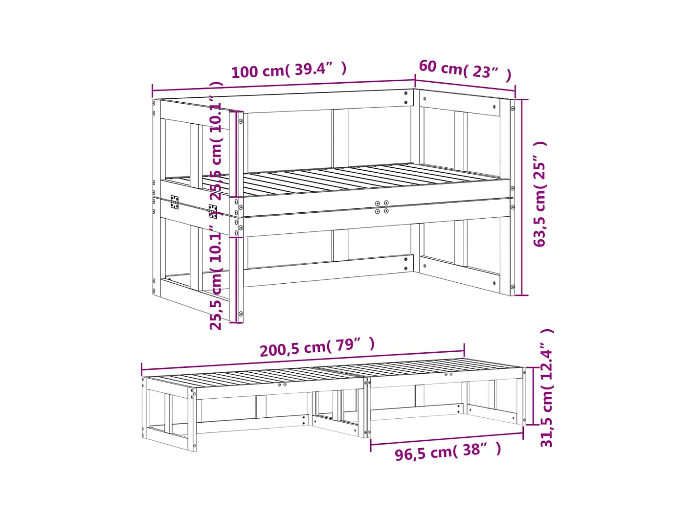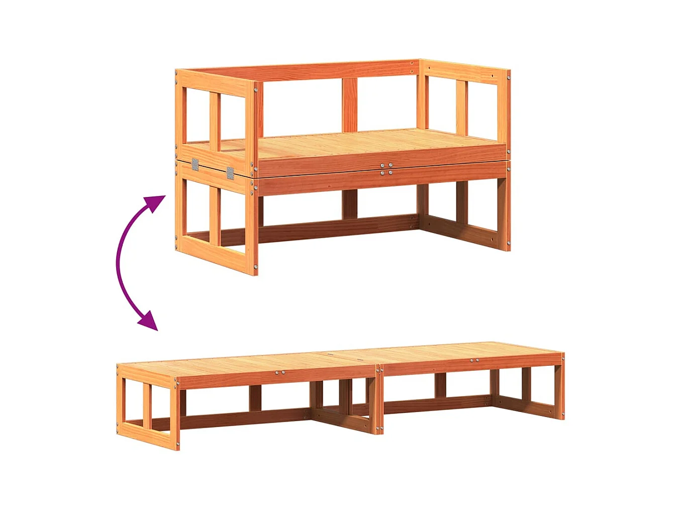 Canapé de jardin extensible cire marron bois massif de pin