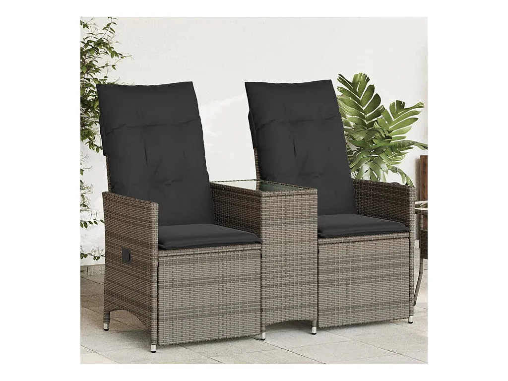 Canapé de jardin inclinable 2 places avec table gris poly rotin FR128573