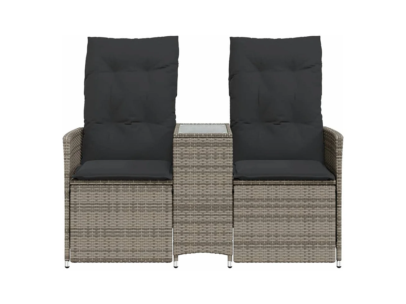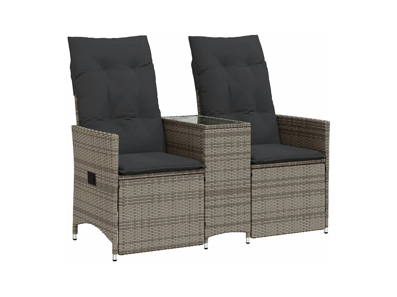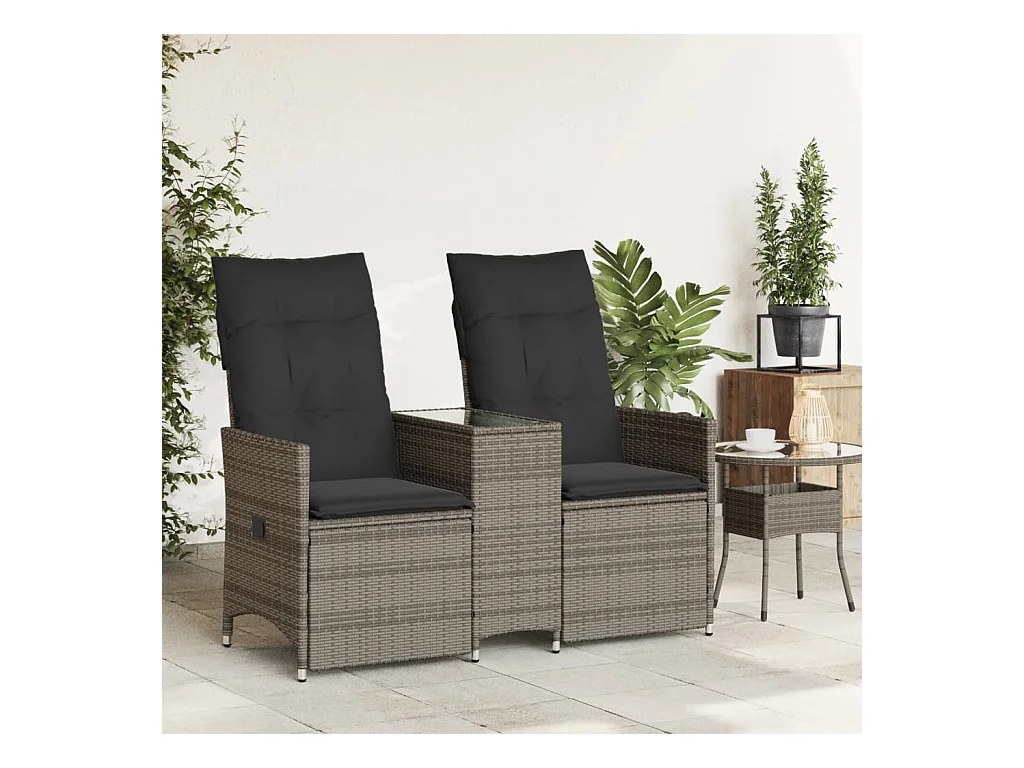 Canapé de jardin inclinable 2 places avec table gris poly rotin FR426399