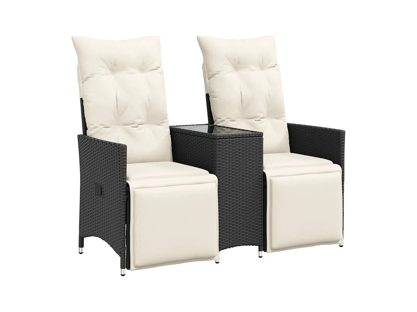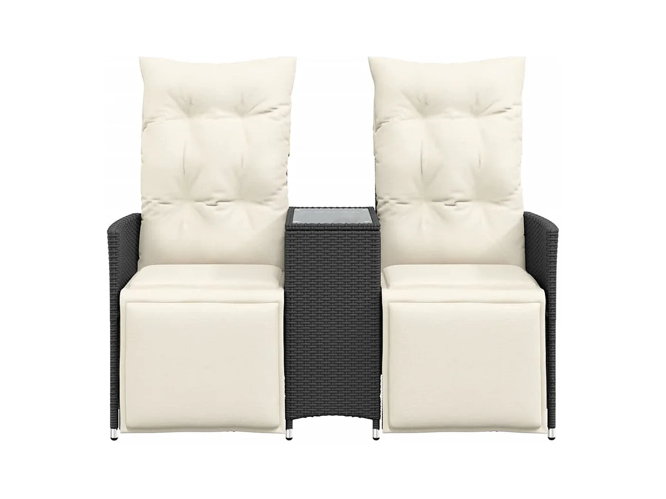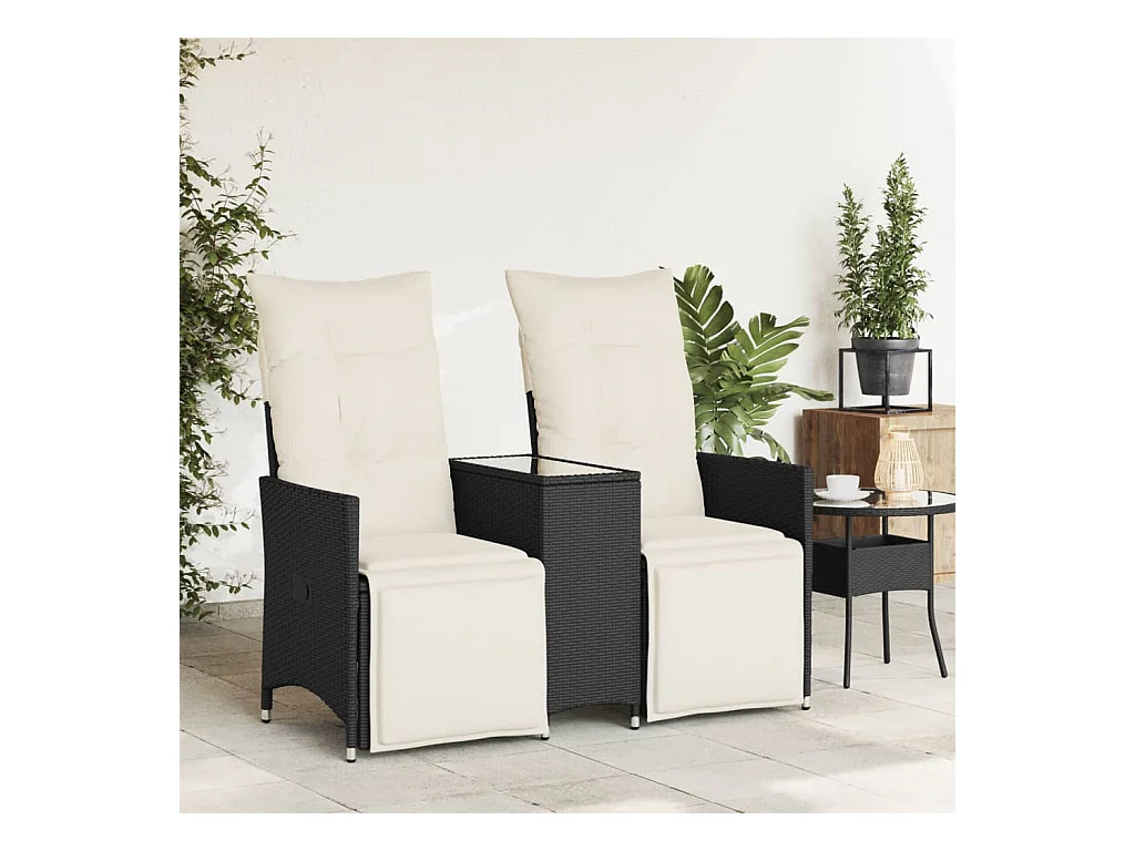 Canapé de jardin inclinable 2 places avec table noir poly rotin FR993905