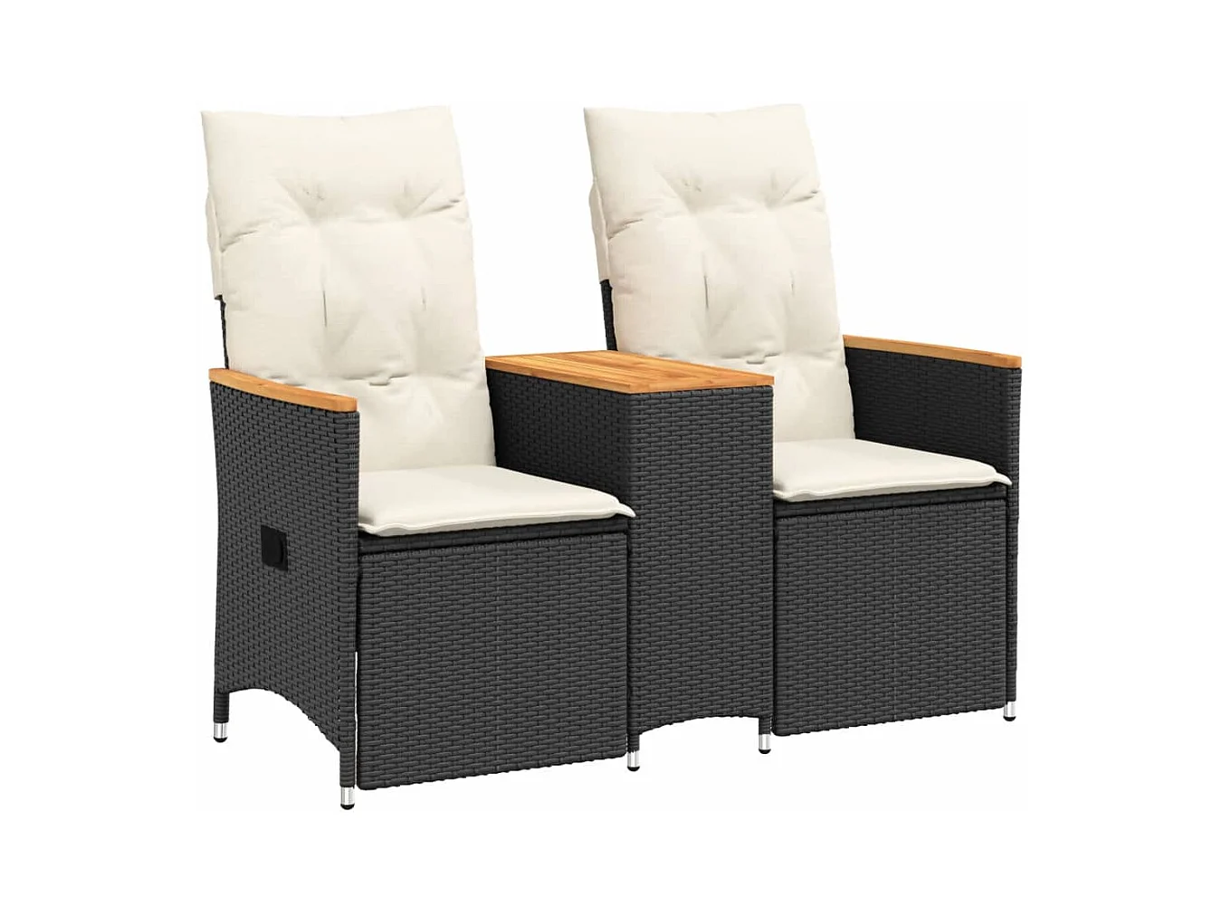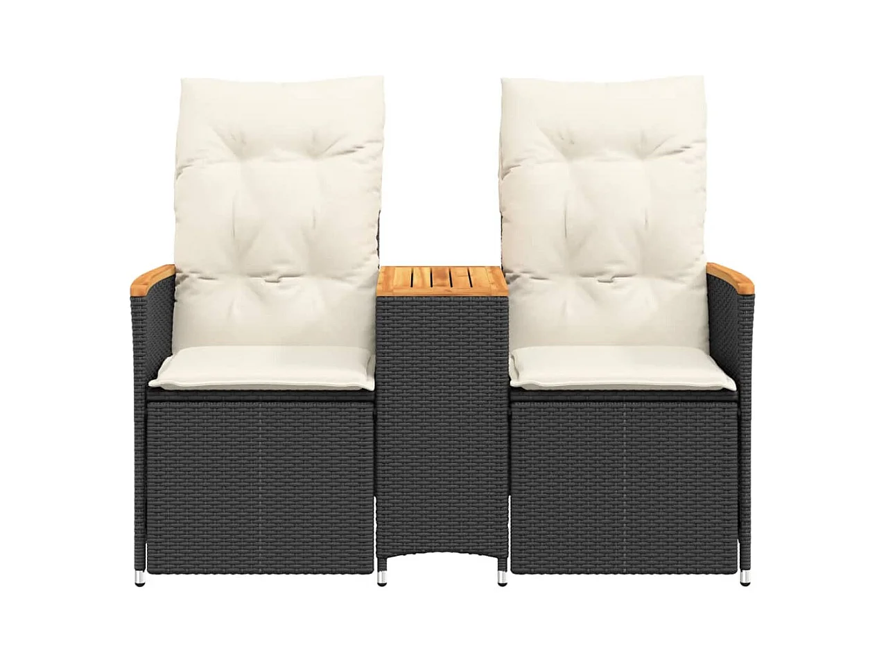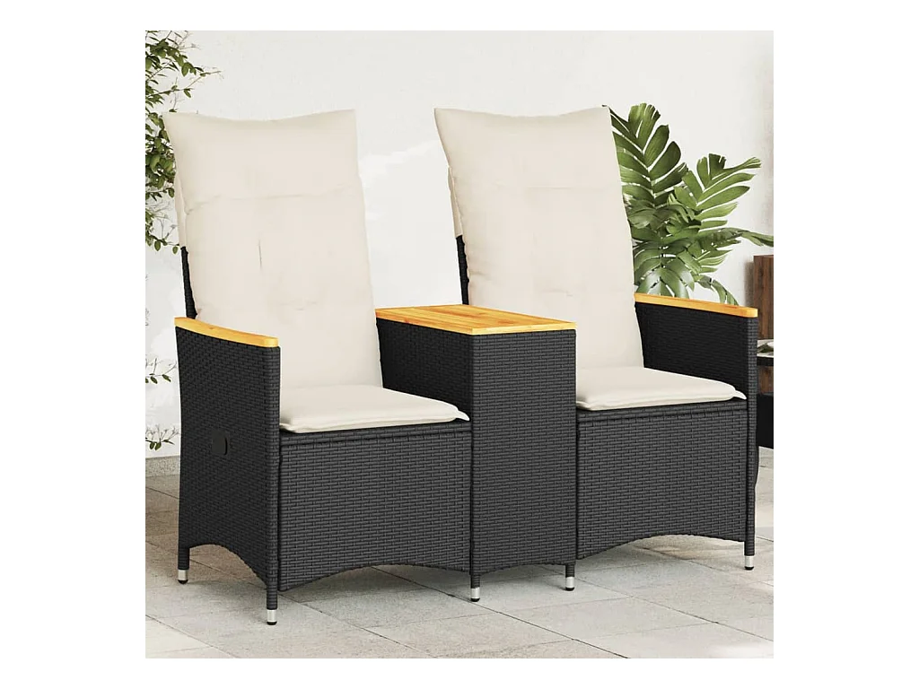 Canapé de jardin inclinable 2 places avec table noir poly rotin FR763362
