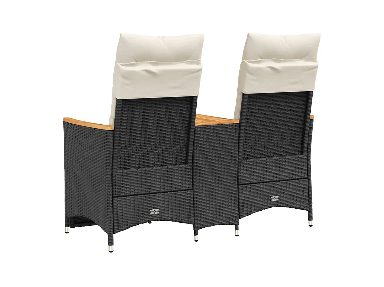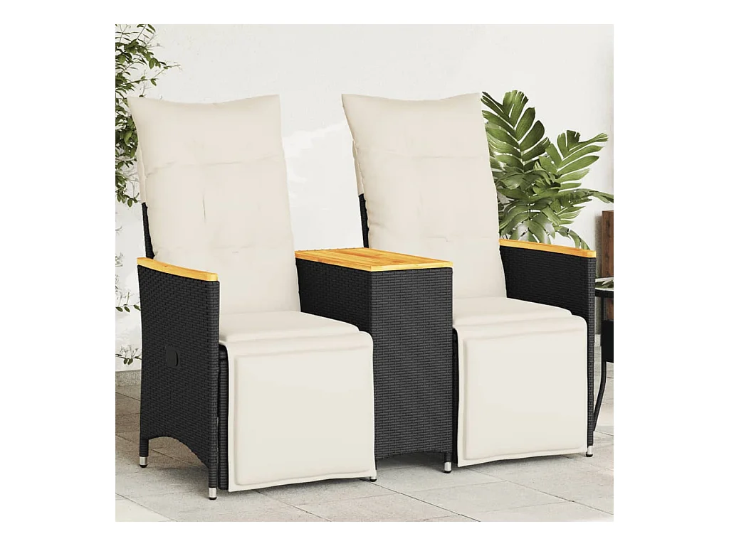 Canapé de jardin inclinable 2 places avec table noir poly rotin FR763362