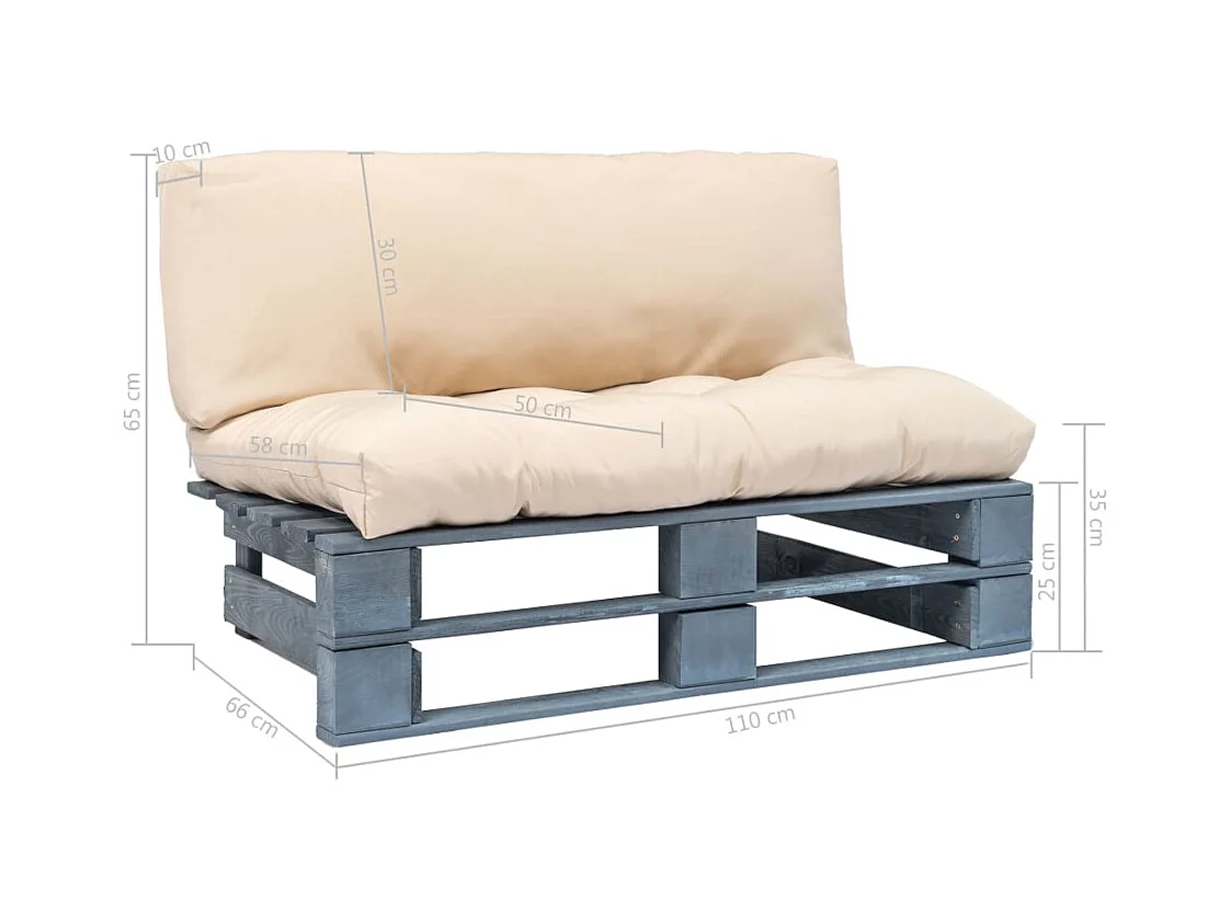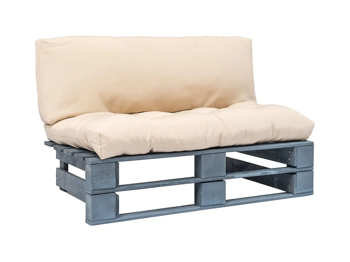 Canapé 2 places de jardin et coussins crème Bois de pin solide